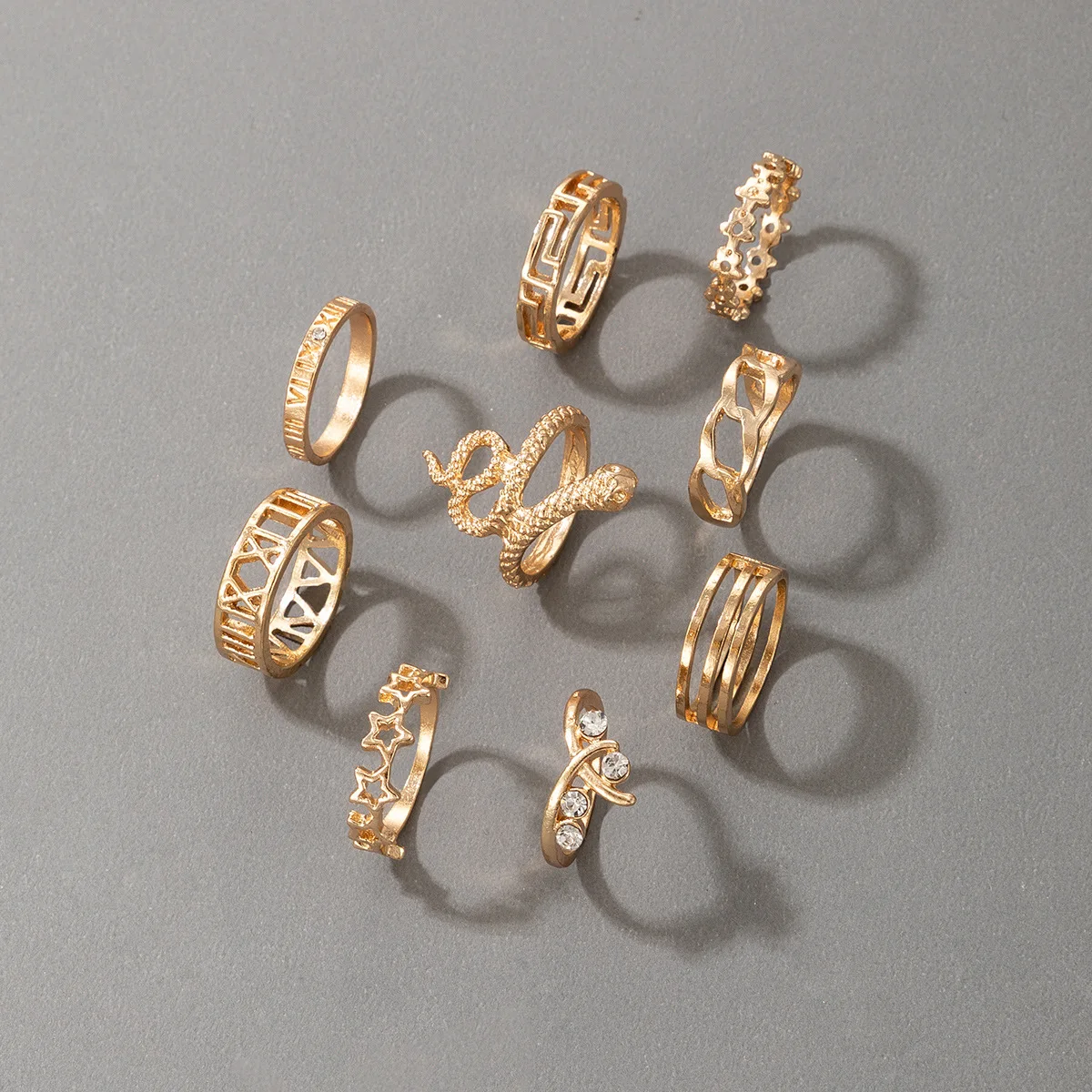 Комплект колец в этническом стиле для женщин, 9 шт.компл.