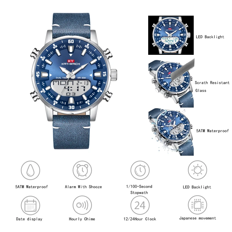 2021 новые модные спортивные брендовые кожаные электронные Дата синхронизации Мужские часы-хронограф ремень Водонепроницаемый наручные часы-будильник 1815