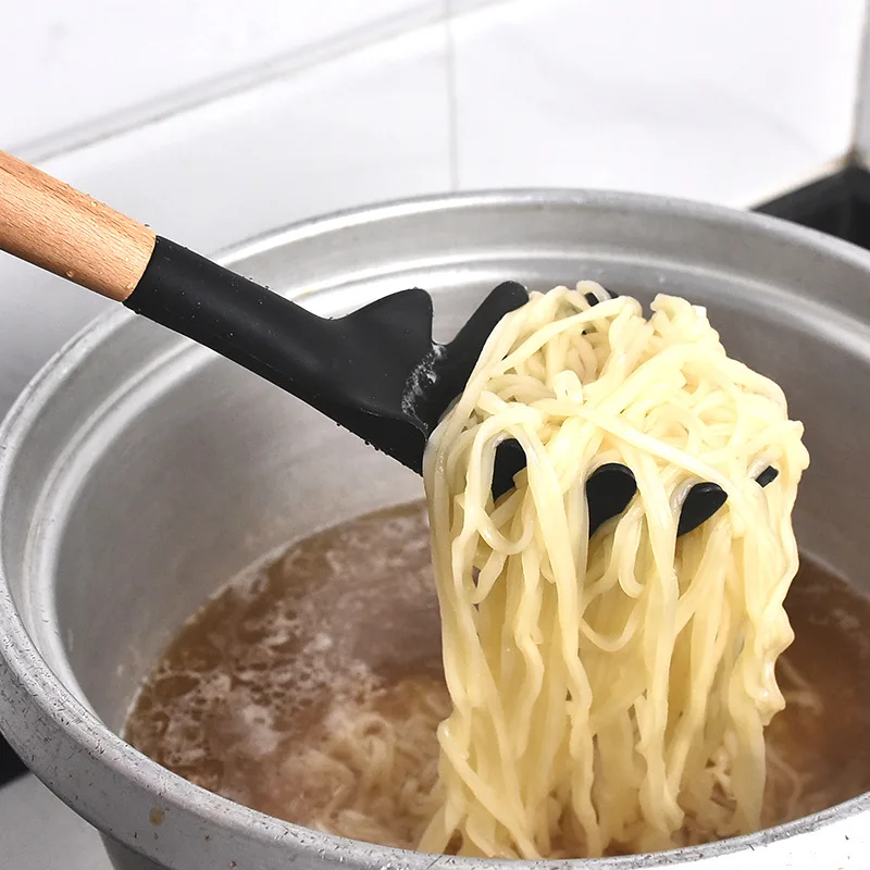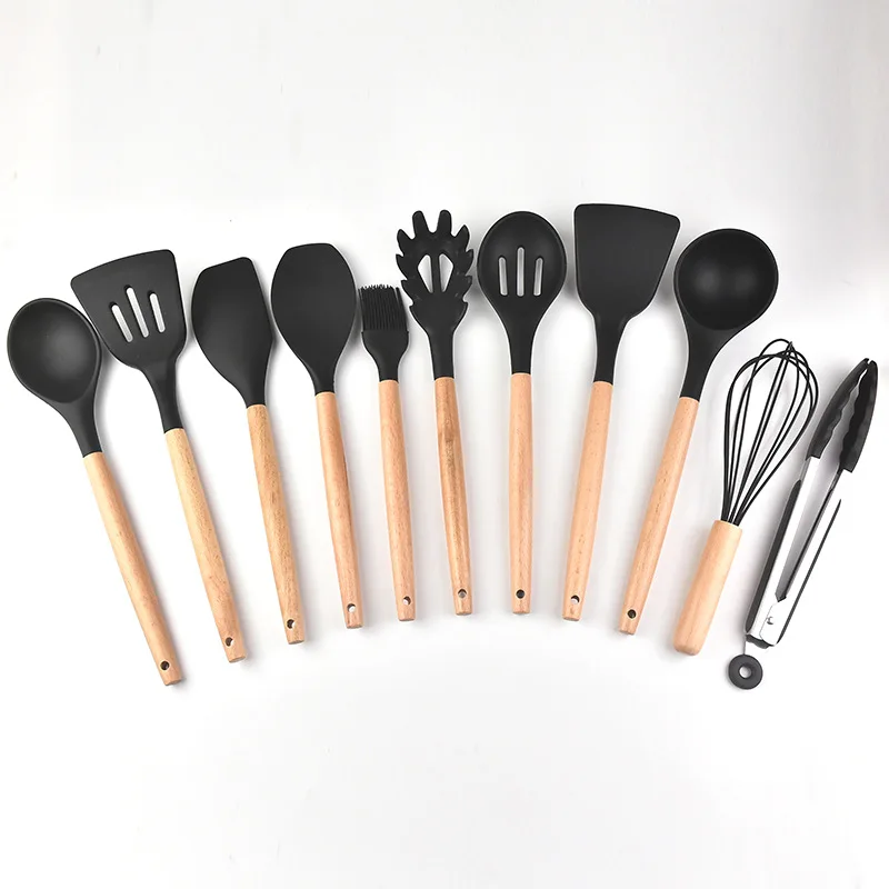 Силиконовая кухонная утварь, кухонные инструменты из пищевого силикона, деревянная ручка, лопатка, ложка, половник, антипригарная посуда