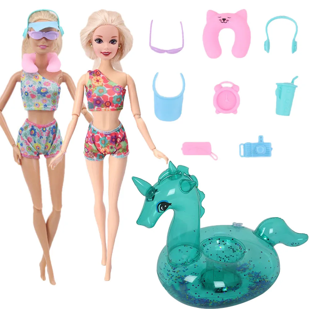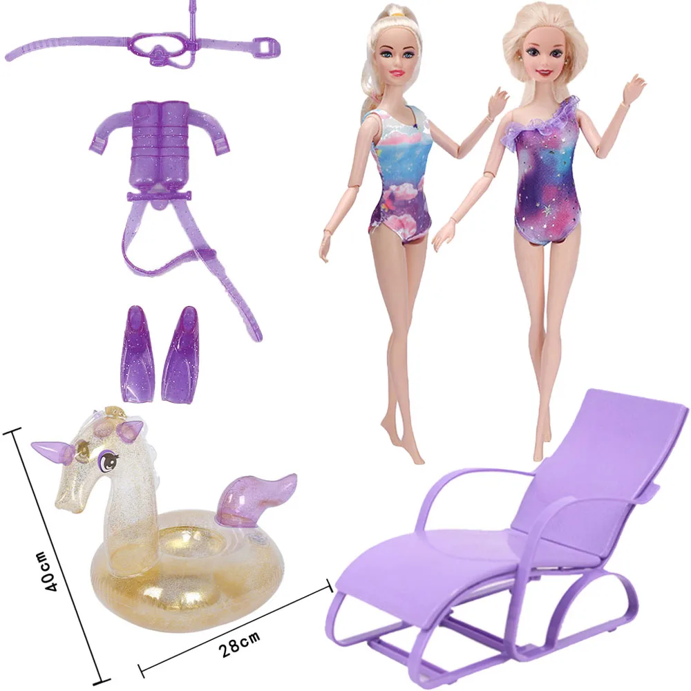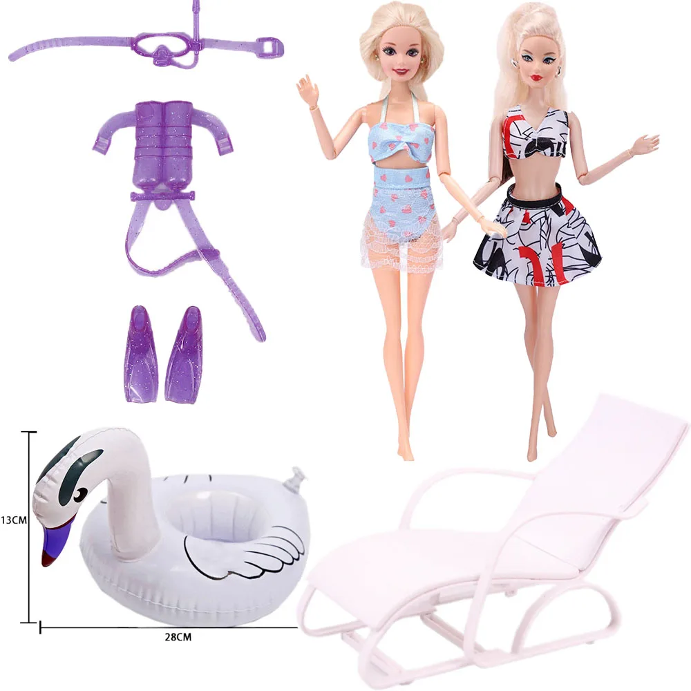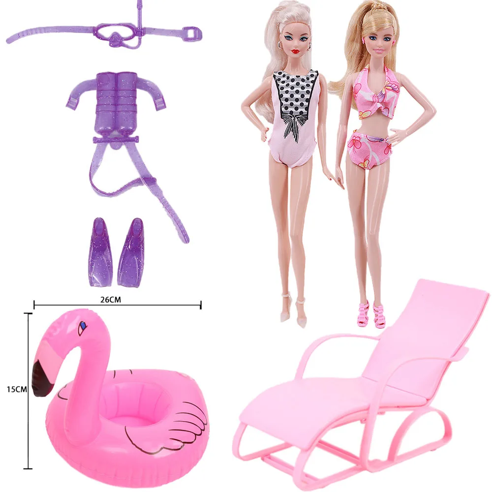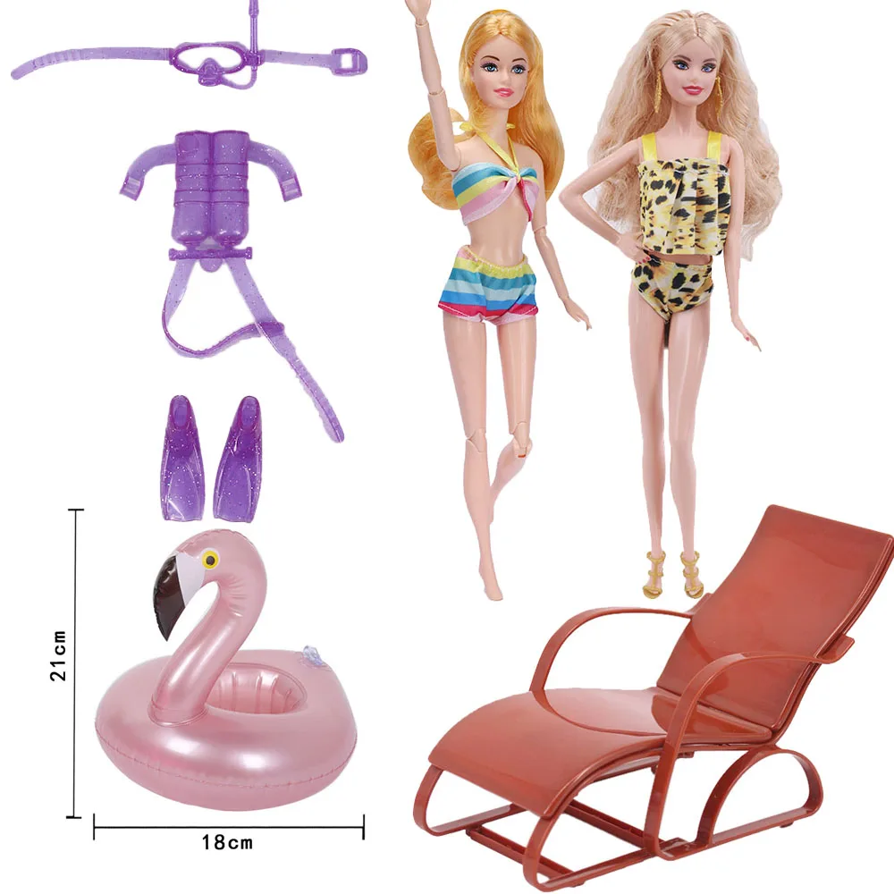 Аксессуары для куклы 5 предметов = 2x купальник бикини + 1x пляжное кресло + 1x Надувное плавающее кольцо + 1x погружные насосы для куклы-Барби игрушки
