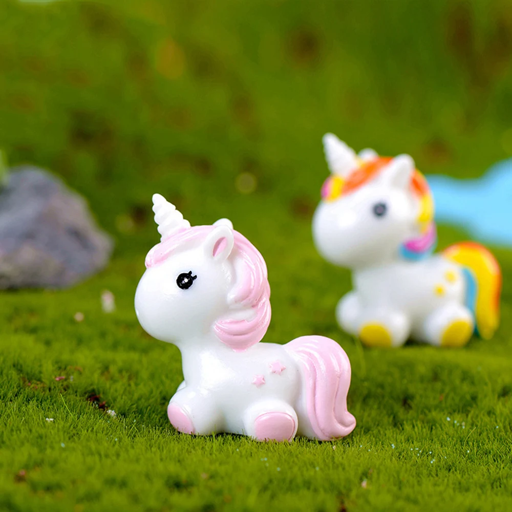 Милое украшение из смолы в виде единорога, миниатюрное украшение для семейного микро ландшафта, миниатюрные статуэтки в виде единорога для домашнего декора