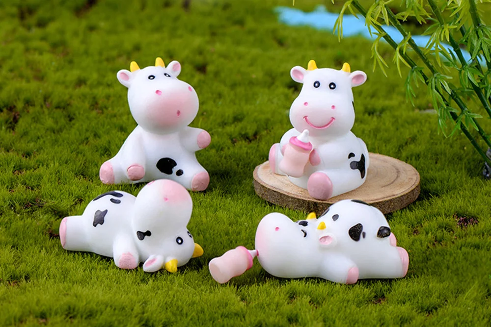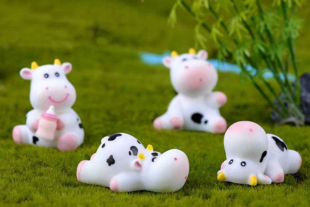 Фигурка коровы, 1 шт., миниатюрная модель для украшения дома, милые аксессуары, настольное украшение для сада