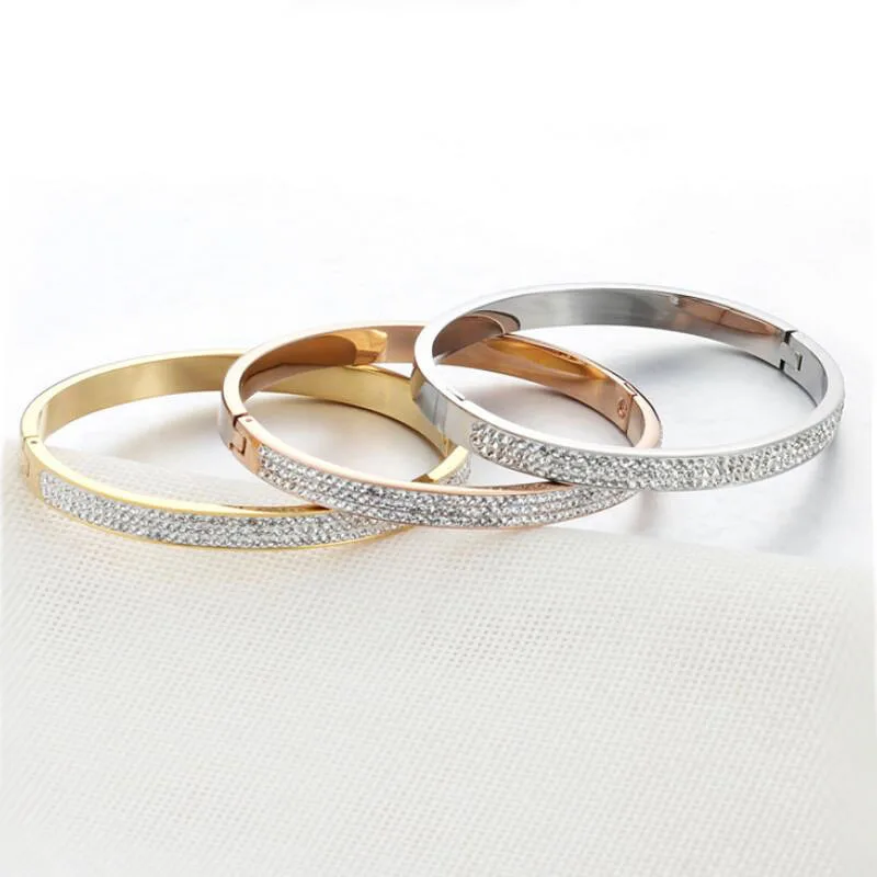 2021 Высокое качество Горячая Распродажа Кристалл от Swarovski простой Титановый стальной браслет с 3 рядами кристаллов подходит для женщин и женщин