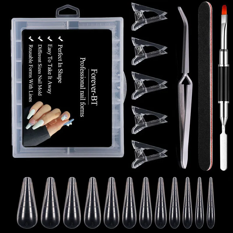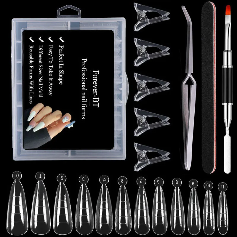 120 шт., прозрачные двойные формы, система для ногтей, полное покрытие, быстро строительный гель-форма, 1 шт., зажим для наращивания ногтей, формы для наращивания, верхние формы для ногтей, наконечники для ногтей