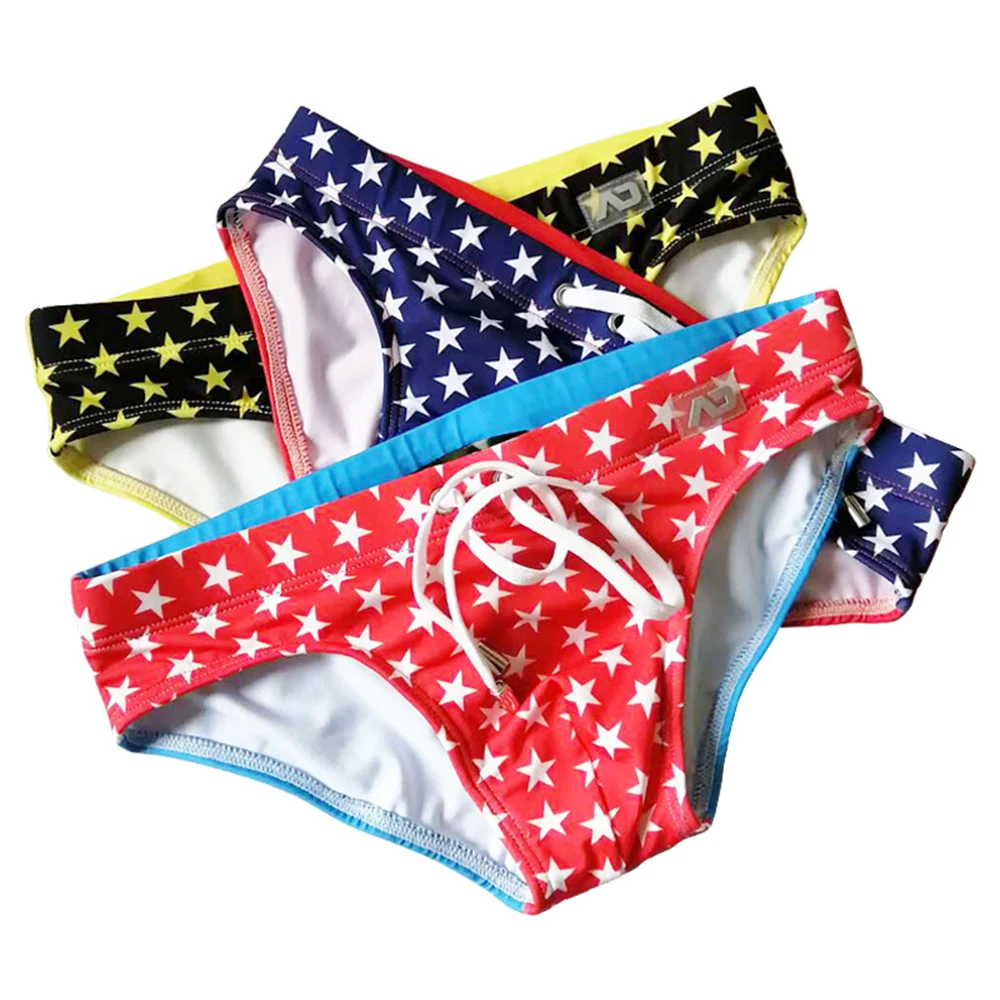 Мужские пляжные плавки со звездами, плавки со шнуровкой, трусы, мужской купальник, трусы, одежда для плавания, 2021