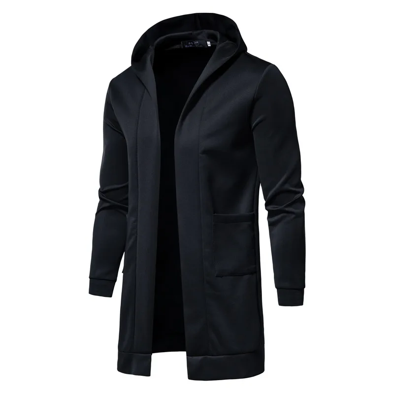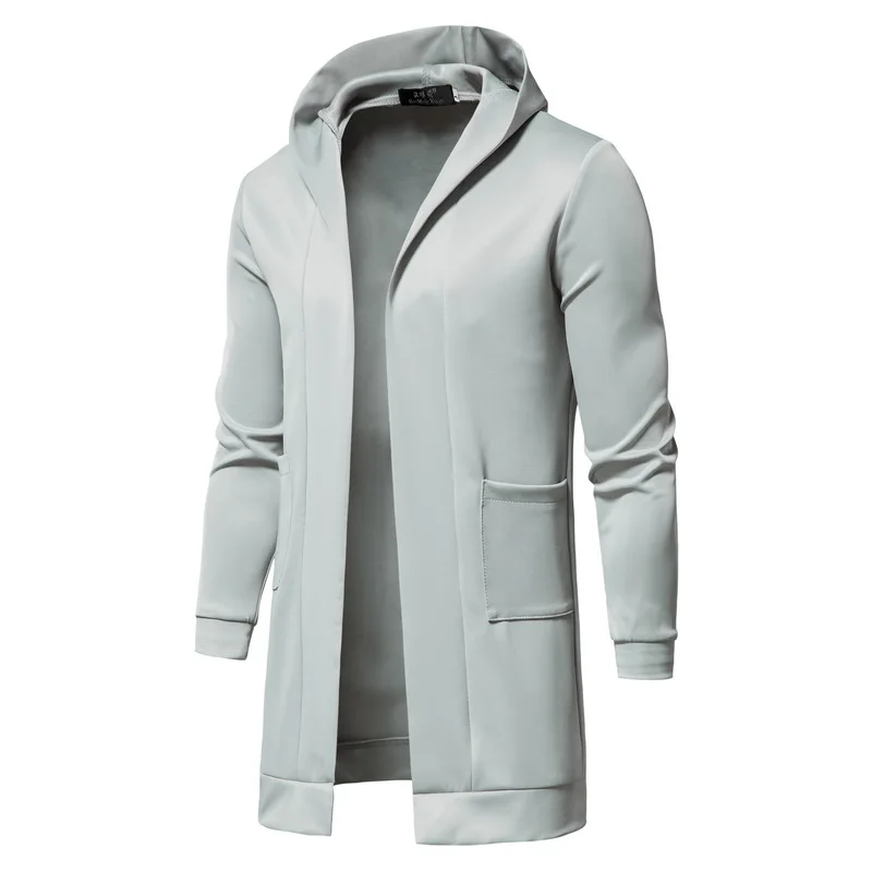 Мужской повседневный тренчкот, приталенное длинное пальто с капюшоном, цвет серый, белый, черный