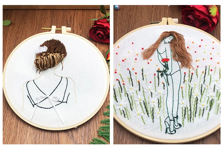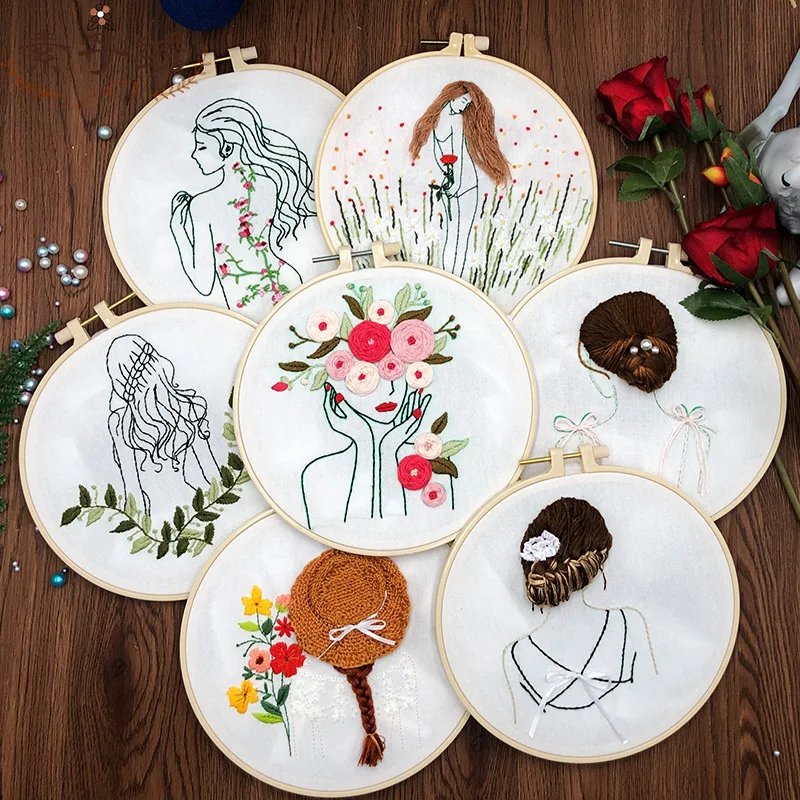 Европейский Набор для вышивки сделай сам с обручем, Набор для вышивки крестиком с рисунком девушки, набор для рукоделия, шитье, искусство, роспись, Прямая поставка