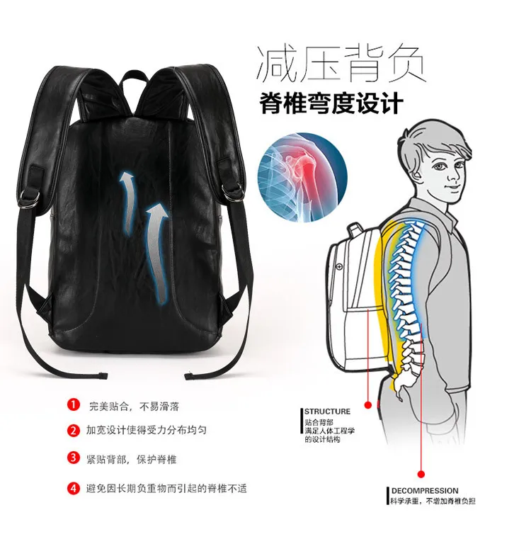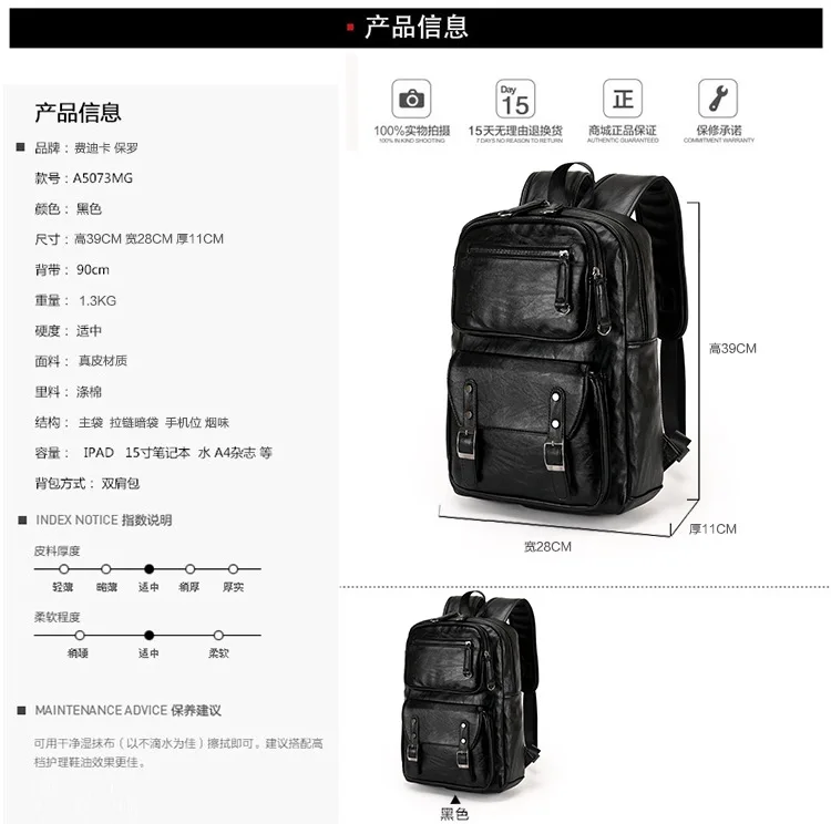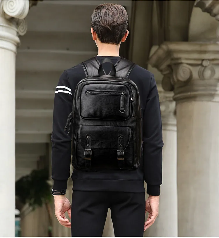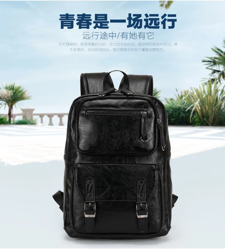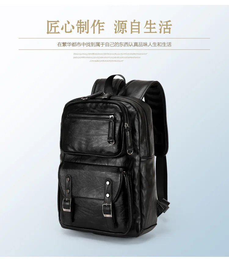 Новый рюкзак кожаный Простой Высококачественный мужской модный тренд Молодежная Вместительная деловая дорожная сумка для компьютера