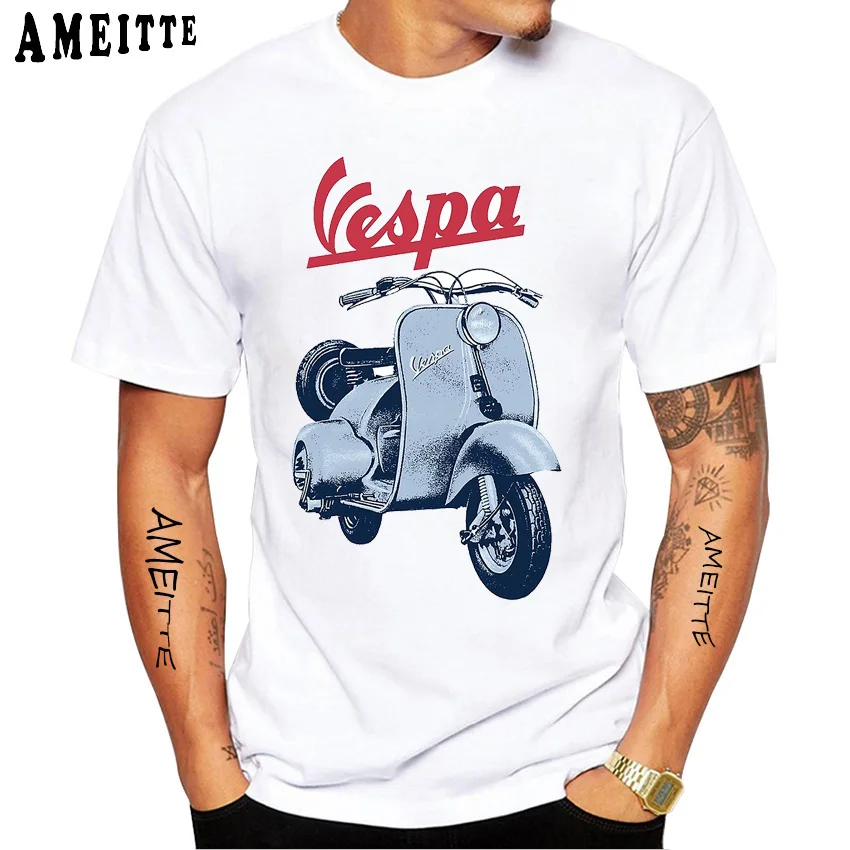 Классическая Ретро футболка для вождения скутера Vespa в стиле 80-х годов, новая летняя модная мужская футболка с коротким рукавом для мальчиков, крутые мужские футболки