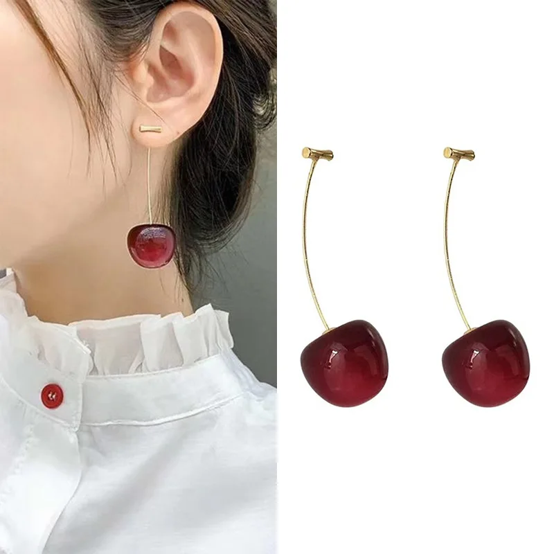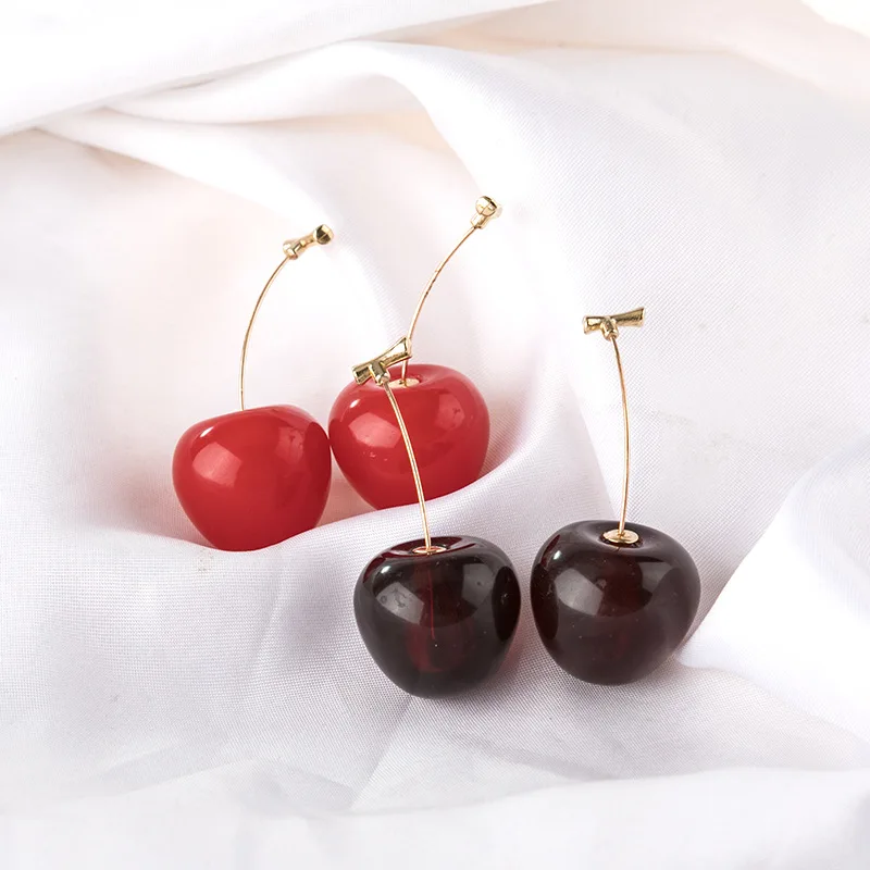 Новое поступление 2021, модные ювелирные изделия из акрила, красивые женские висячие серьги, милые длинные висячие серьги с фруктами и вишней для моделирования