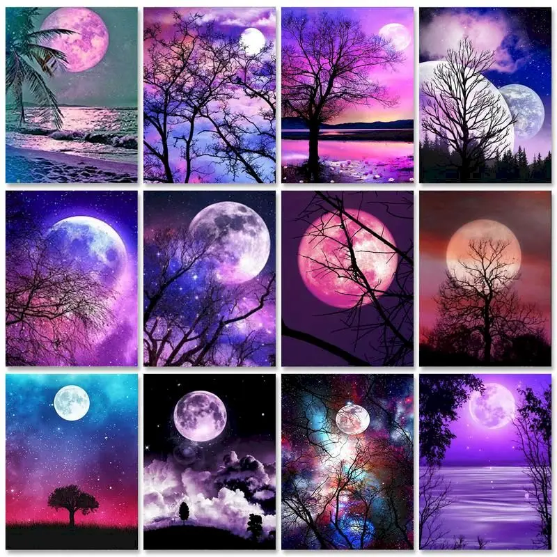 PhotoCustom масло Краски по номерам Наборы Луна декорации DIY Краски ing по номерам на холсте рама для пейзажа 60x75 см рисовать Краски Инж