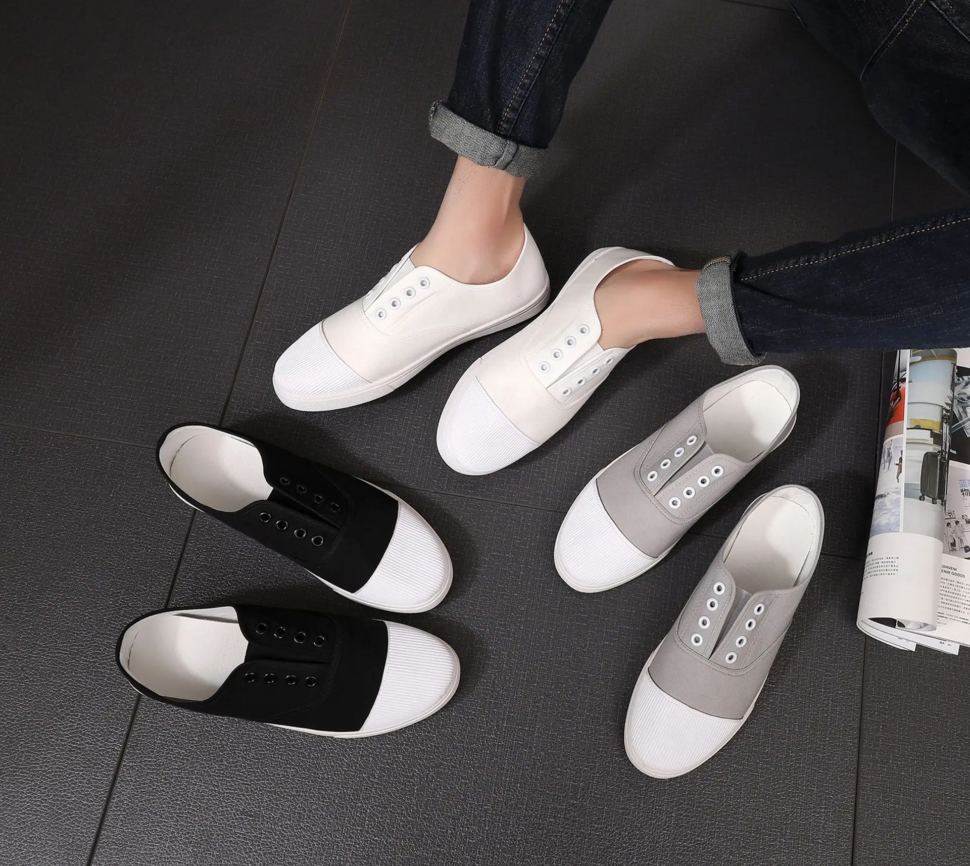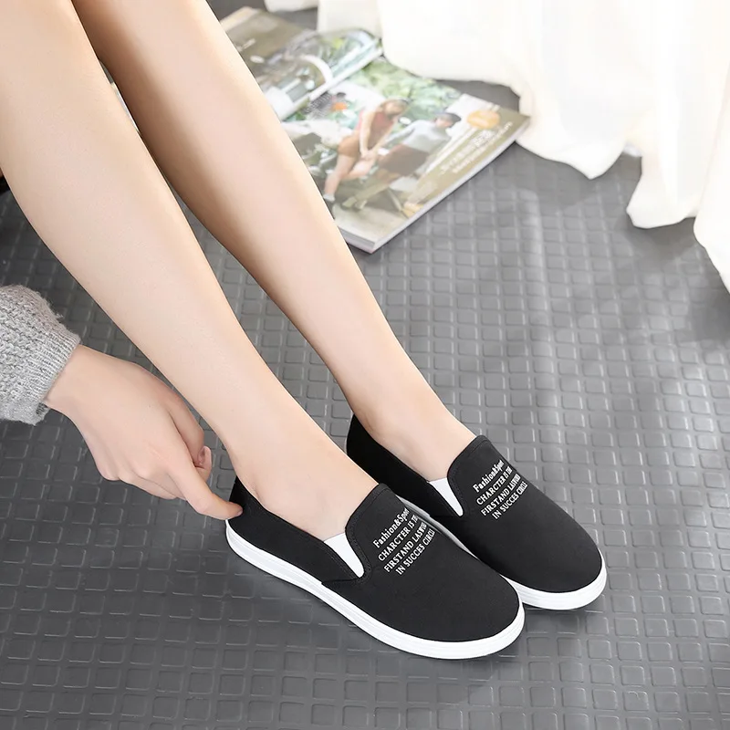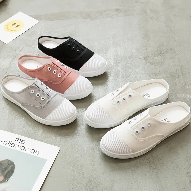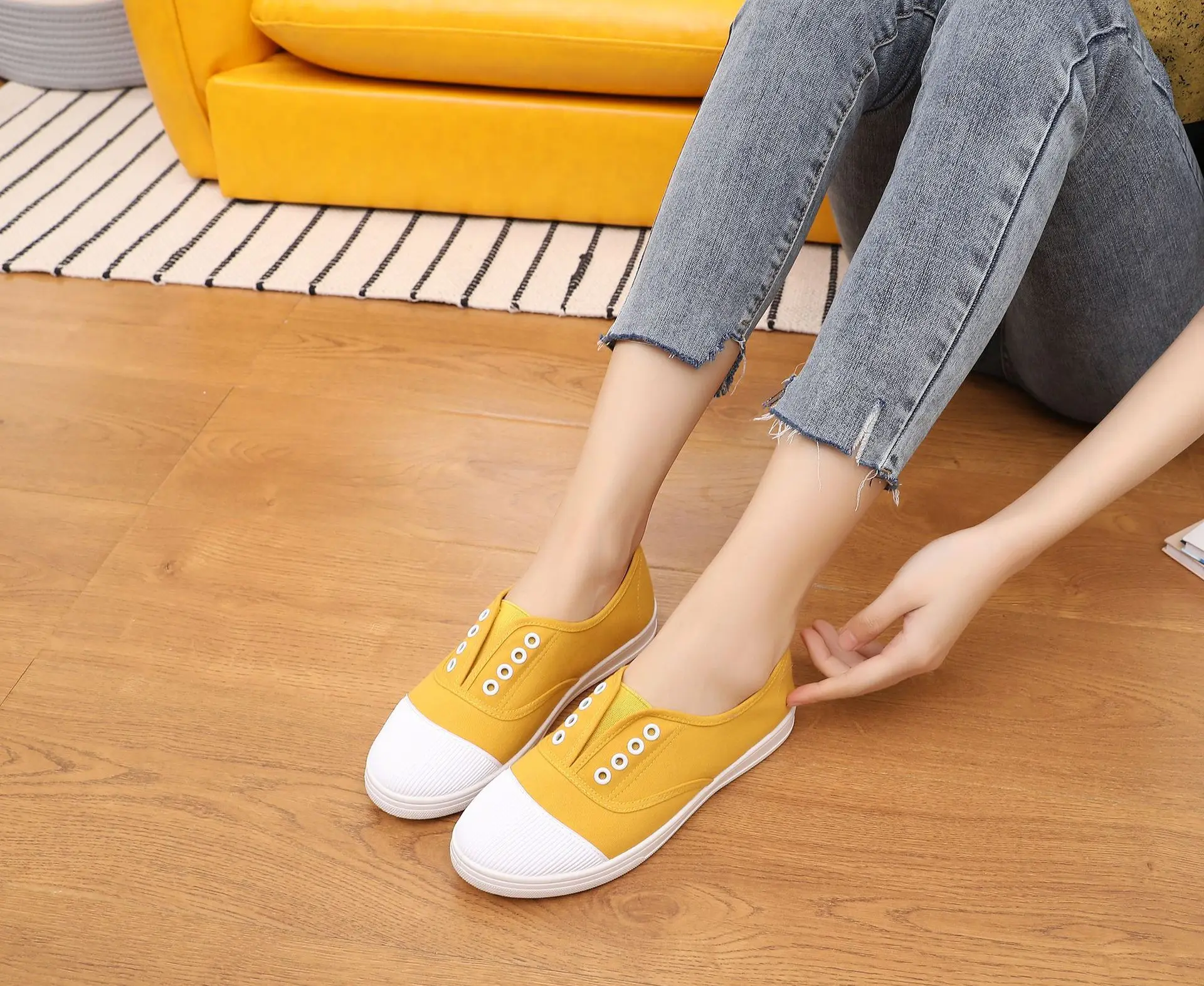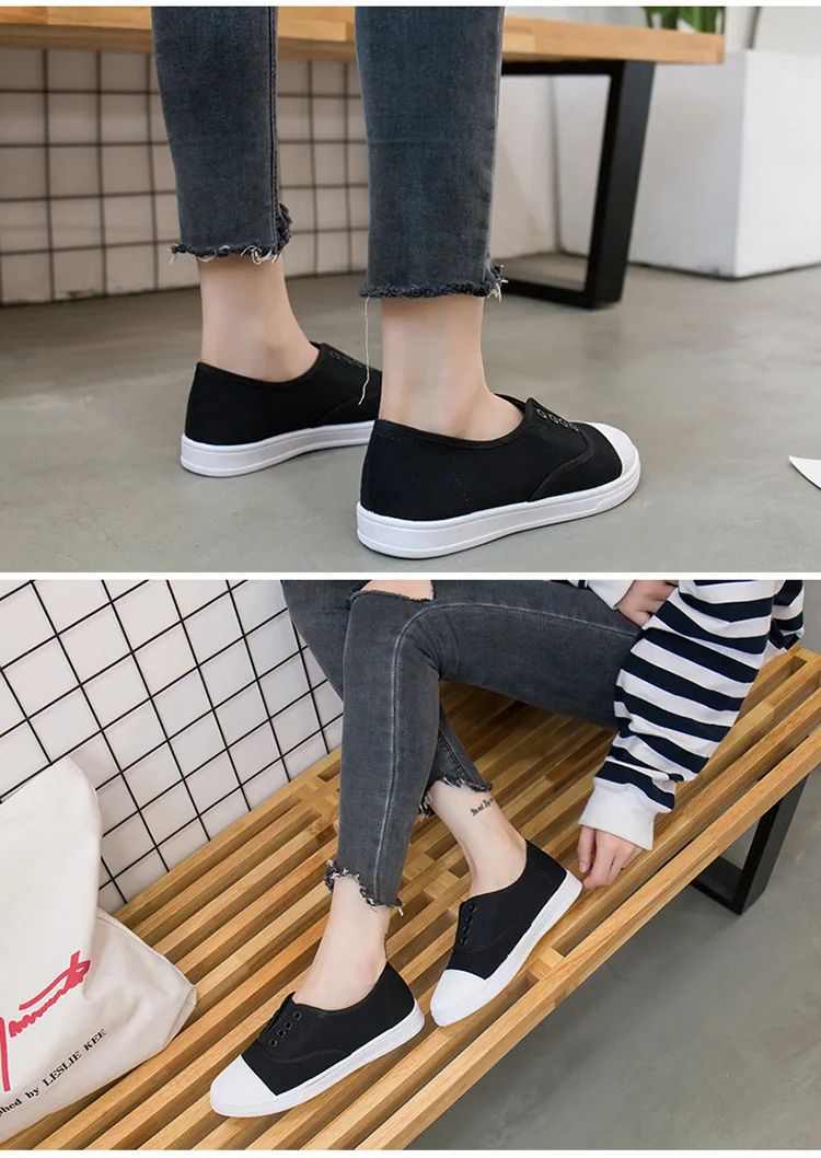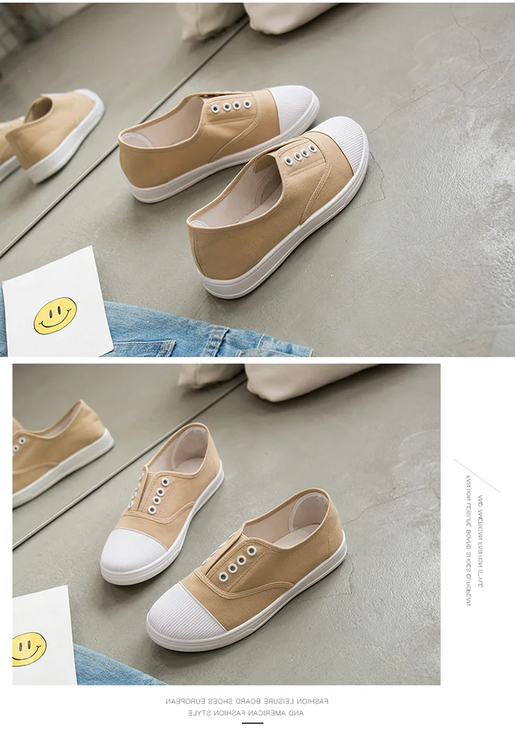 С низким вырезом, холщовая обувь для учеников; Низкий каблук; Повседневные женские туфли Обувь без застежки белые туфли