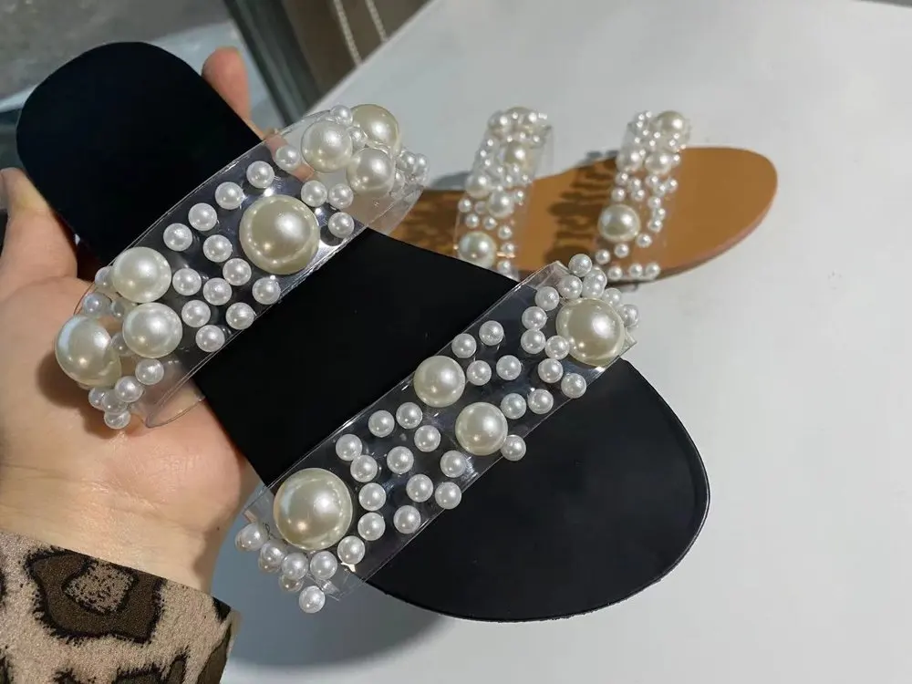 Сандалии Женские однотонные с жемчугом, уличные пляжные босоножки н...