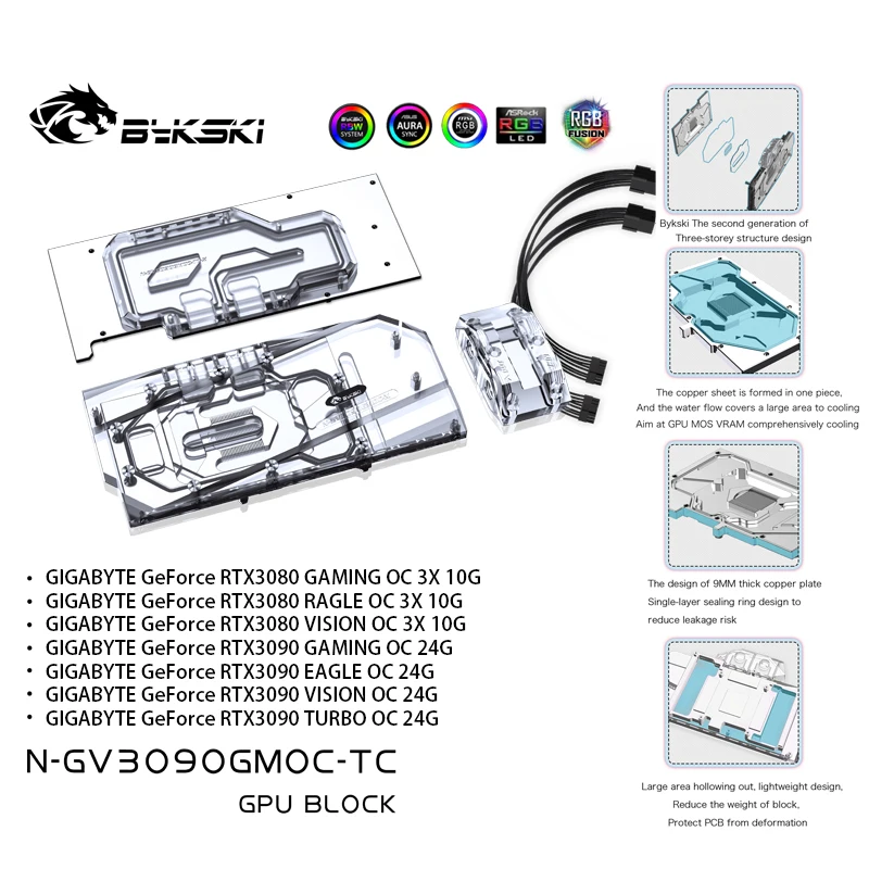 Блок водяного охлаждения Bykski N-GV3090GMOC-TC для GIGABYTE RTX 3080 3090 Gaming Eagle Turbo Vision