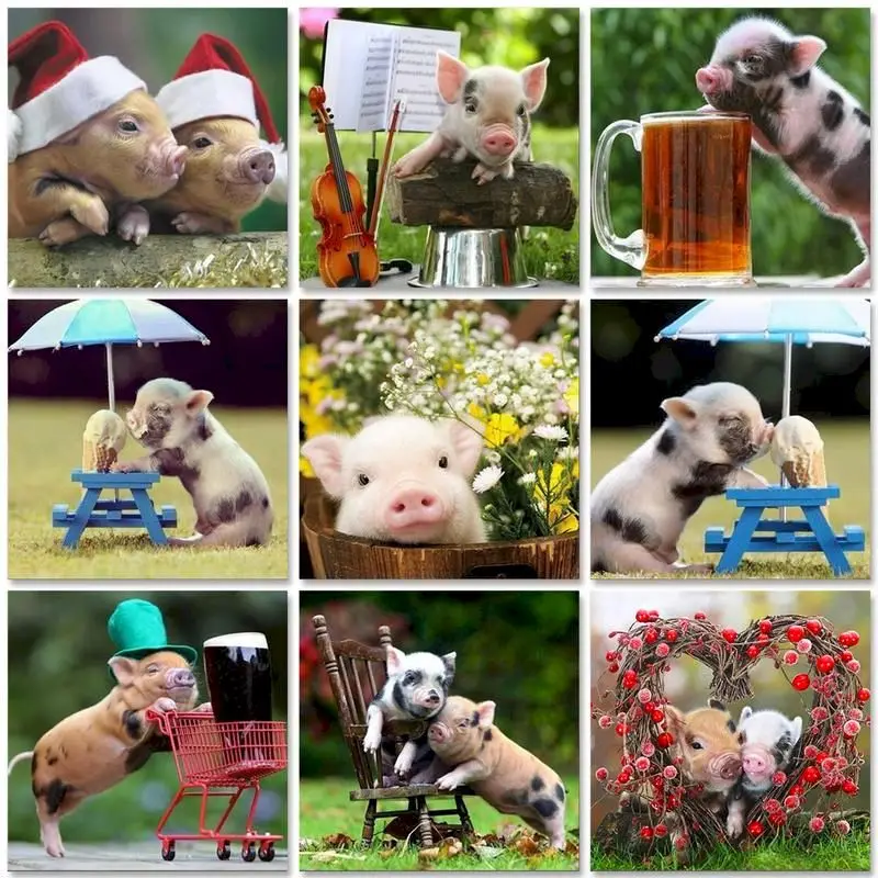 PhotoCustom Краски по номерам Наборы на холсте милые свиней DIY рамка 60x75 см Масло Краски ing по номерам ручная Краски домашние украшения с животными