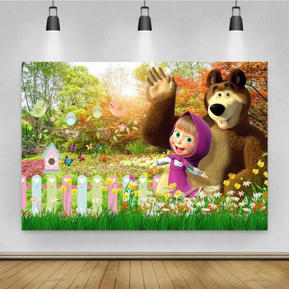 Счастливый медведь Весенний сад мультфильм фон Девочка День Рождения Декор фотостудия 3D цифровой Фон Ткань