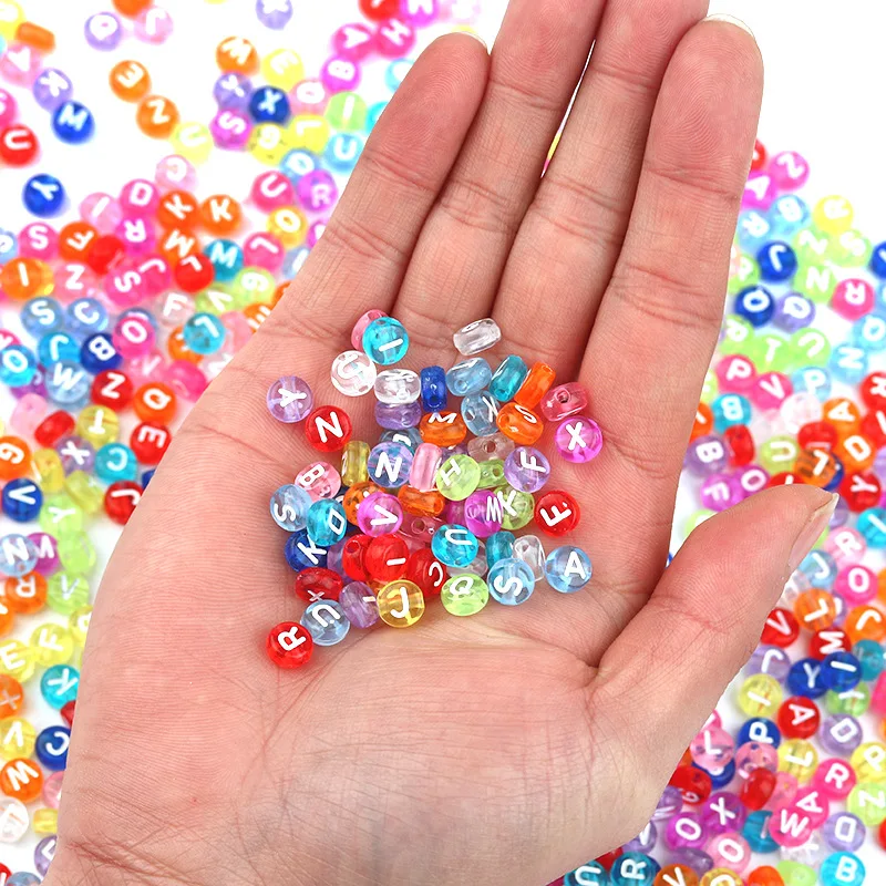 100Упаковка 7 мм разноцветные буквы круглые акриловые бусины плоские наборные бусины для изготовления ювелирных изделий ручной работы сделай сам для изготовления браслетов и ожерелий