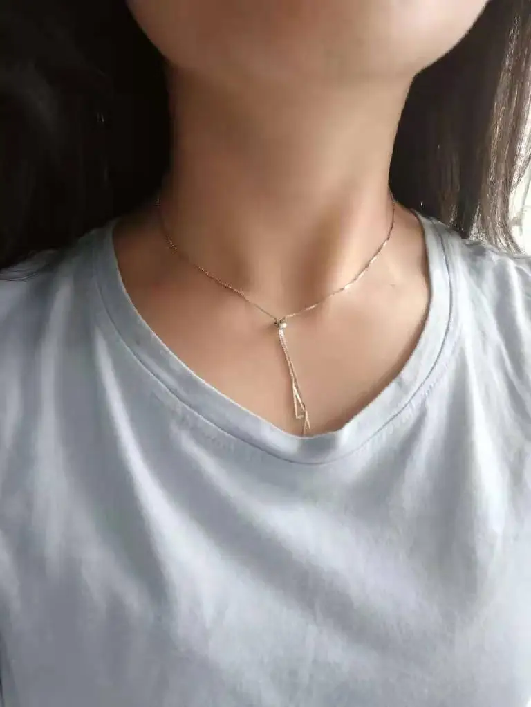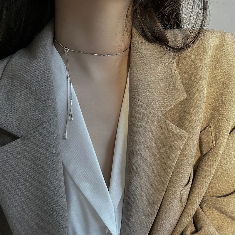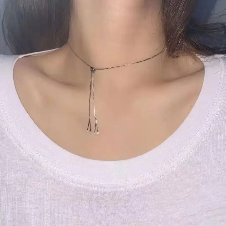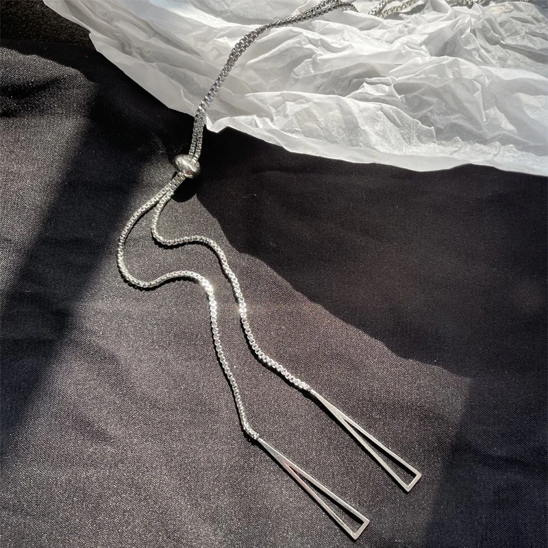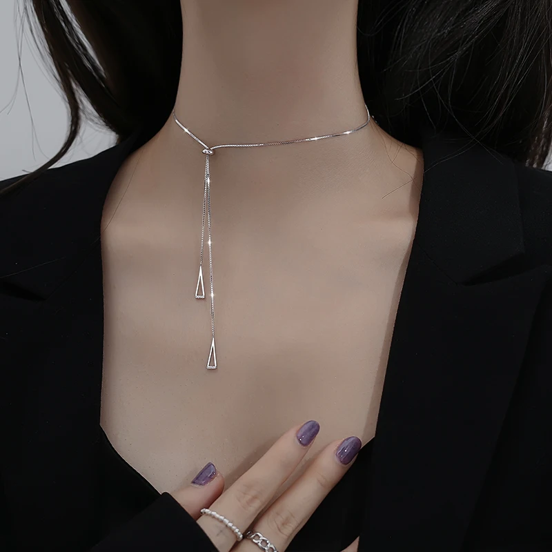 Женская Выдвижная цепочка из стерлингового серебра 925 пробы с геометрическим узором, простая Глянцевая полая треугольная цепочка, свадебное Ювелирное Украшение до ключиц