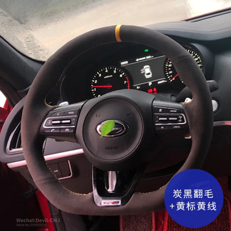 DIY ручной работы чехол рулевого колеса автомобиля черная замша кож...