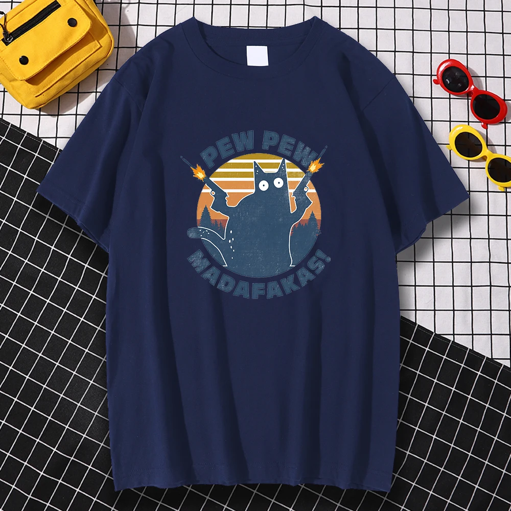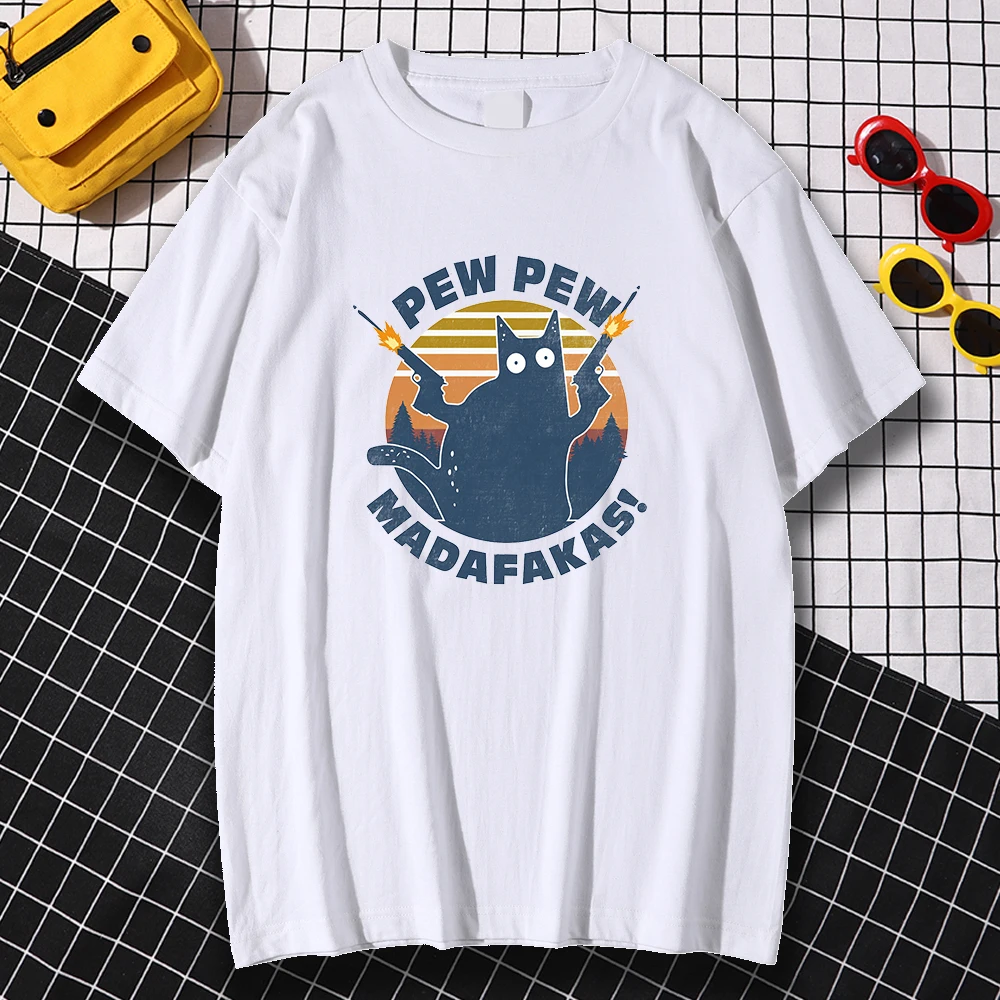 Мужская хлопковая футболка с принтом Pew Madafaka, дизайнерская свободная футболка с круглым вырезом и короткими рукавами в стиле Харадзюку