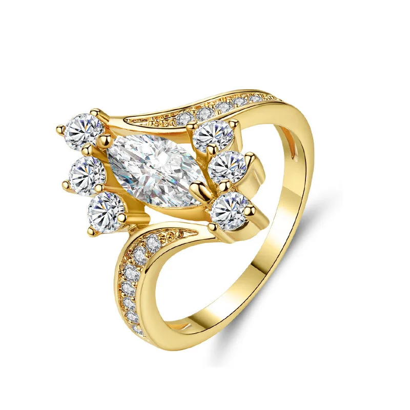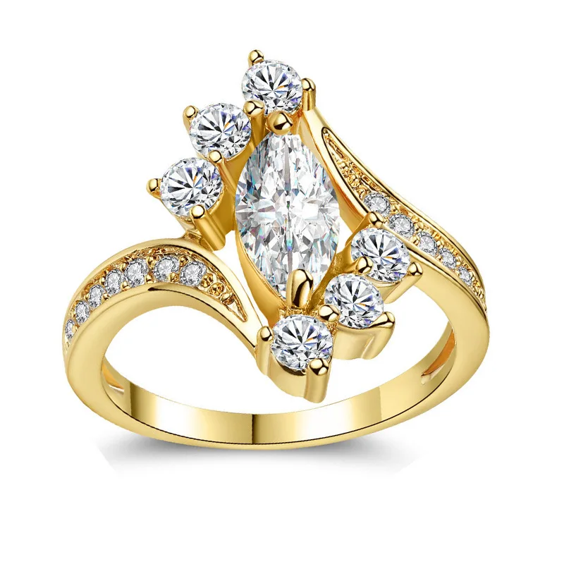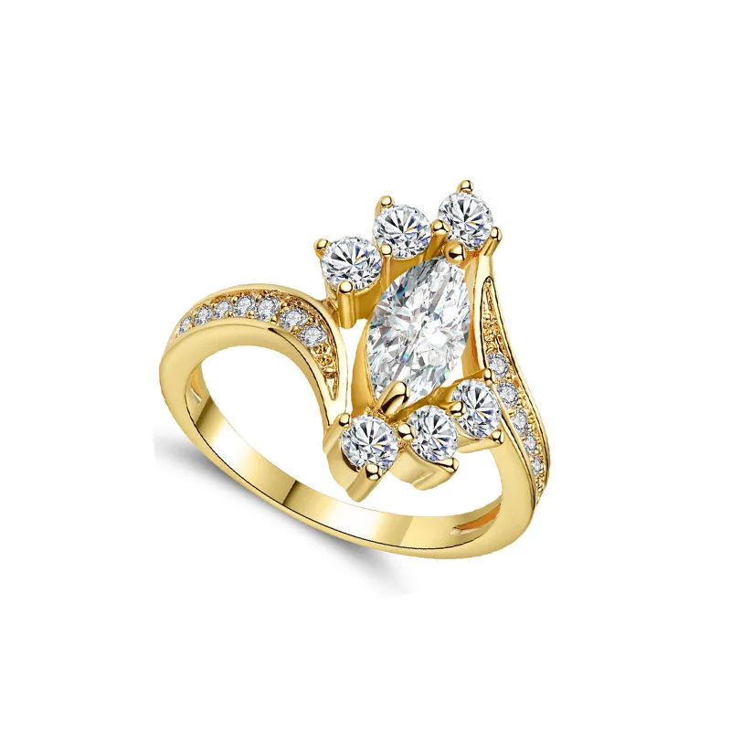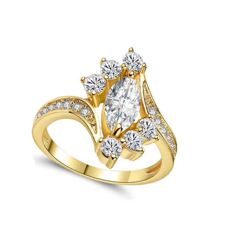 Классическое роскошное модное золотистое кольцо с кристаллами цирко...