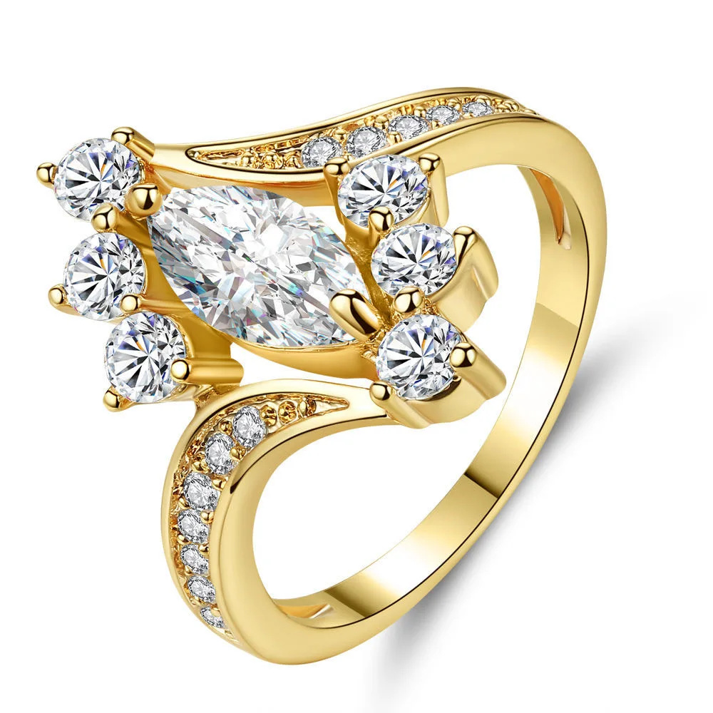 Женское кольцо с фианитом, резное обручальное кольцо золотого цвета...
