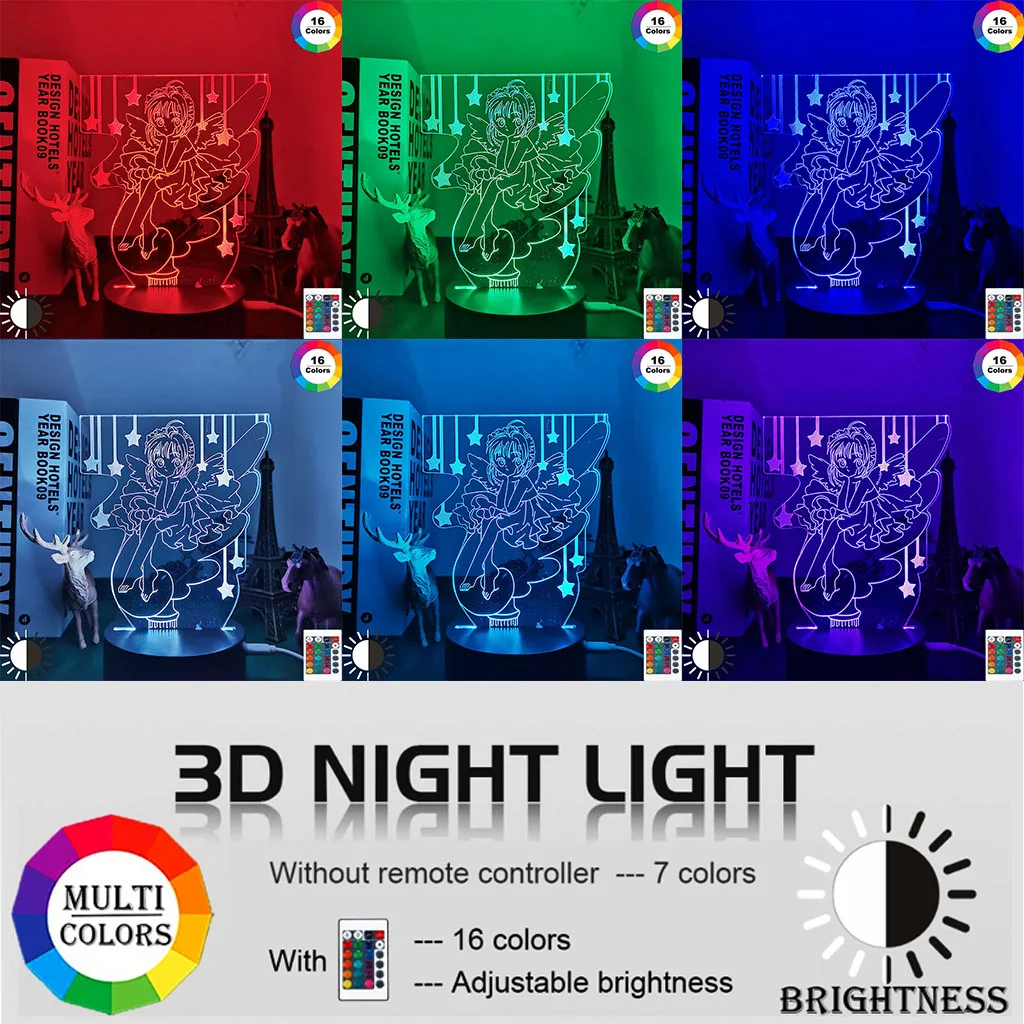 3d светодиодный светильник, аниме кардкаптор Сакура для спальни, декор, светильник, подарок для детей на день рождения, манга, комната, стол, 3d лампа, кардкаптор Сакура