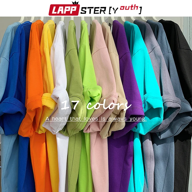 Футболка LAPPSTER-Youth мужская с графическим принтом, однотонная уличная одежда в стиле Харадзюку, смешная хлопковая винтажная одежда для пар, 17 цветов, лето 2022