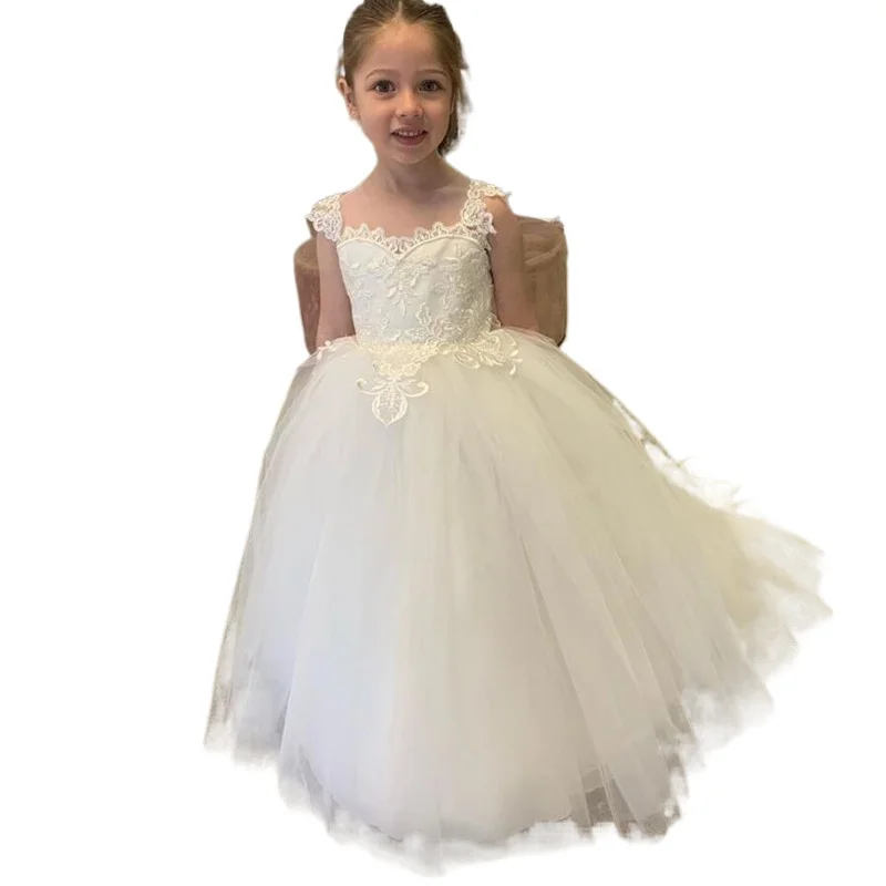 Платье белого цвета и цвета слоновой кости с отвесной спинкой для девочек в цветочек платья с кружевами и бантом, с аппликацией для девочек для выступлений, дня рождения, вечерние платья принцессы на свадьбу Формальные Мероприятия