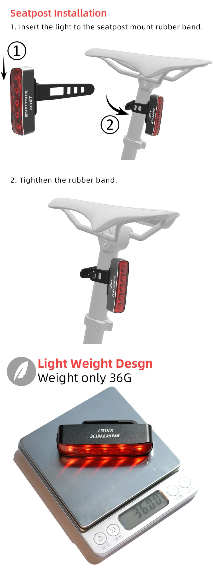 ENFITNIX XlitET велосипедный светильник, автоматический задний стоп...