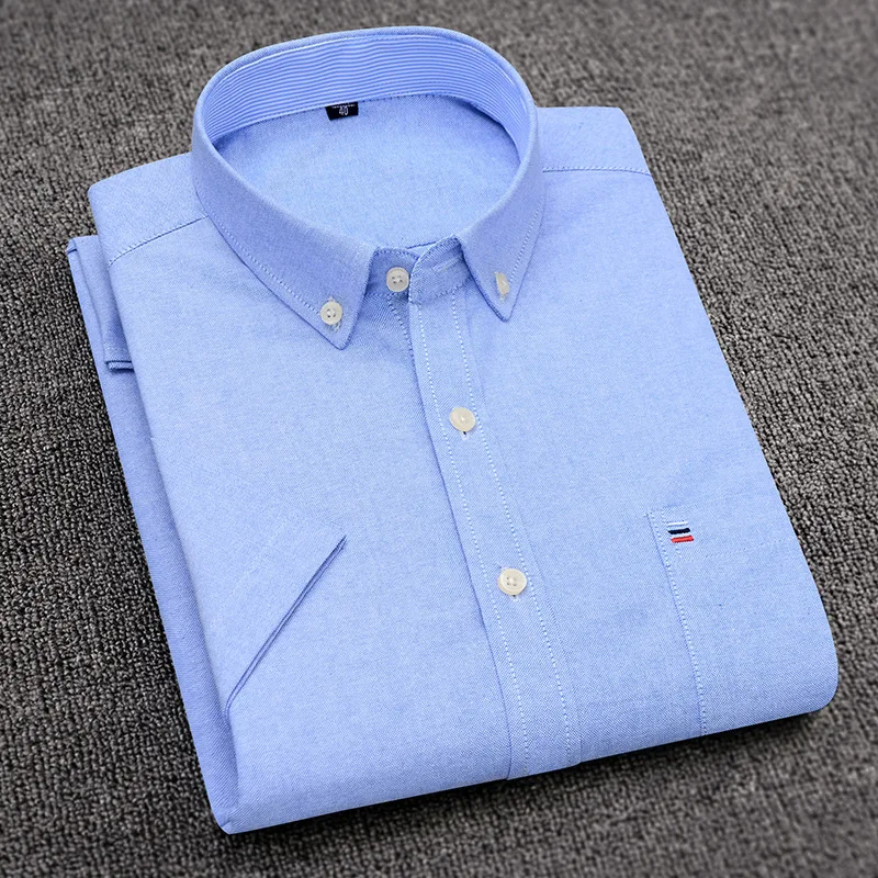 Рубашка мужская из ткани Оксфорд с короткими рукавами, мягкая удобная блуза из 100% хлопка, качественная сорочка классического кроя в повседневном и деловом стиле, от S до 7XL, лето, размера плюс