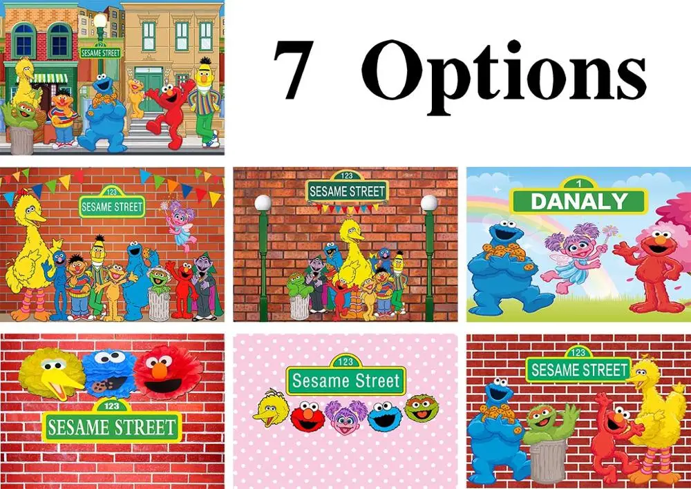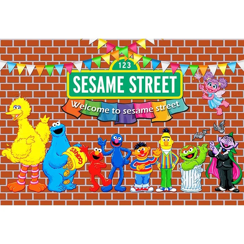 Виниловый фон для студийной фотосъемки Elmo World с изображением кирпичной стены Улица Сезам на день рождения 7x5 футов