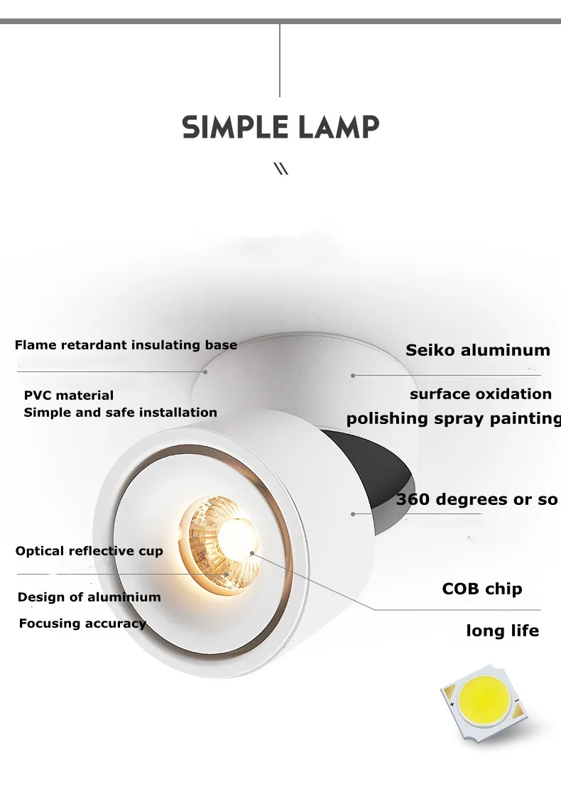 Светодиодный точечный светильник поверхность со свободным направлением 350 COB затемнения 7 Вт 10 Вт 12 Вт 15 Вт светодиодный потолочный светильник лампы светильник трек светильник переменного тока 220V Отель Ресторан пятно