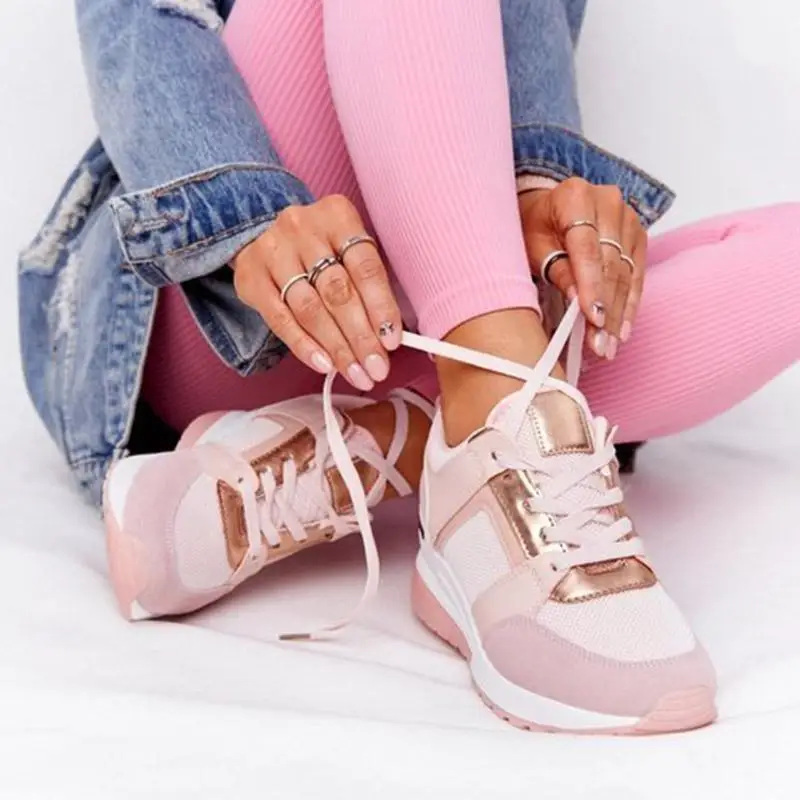 Кроссовки женские спортивные на платформе, однотонные сетчатые, Вулканизированная подошва, Повседневная Уличная обувь на плоской подошве, 2021