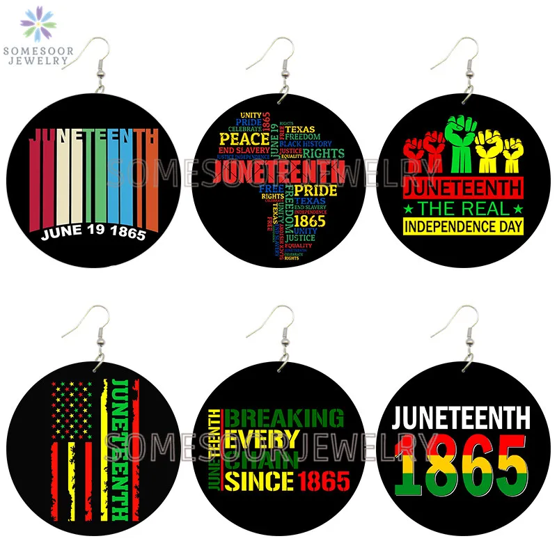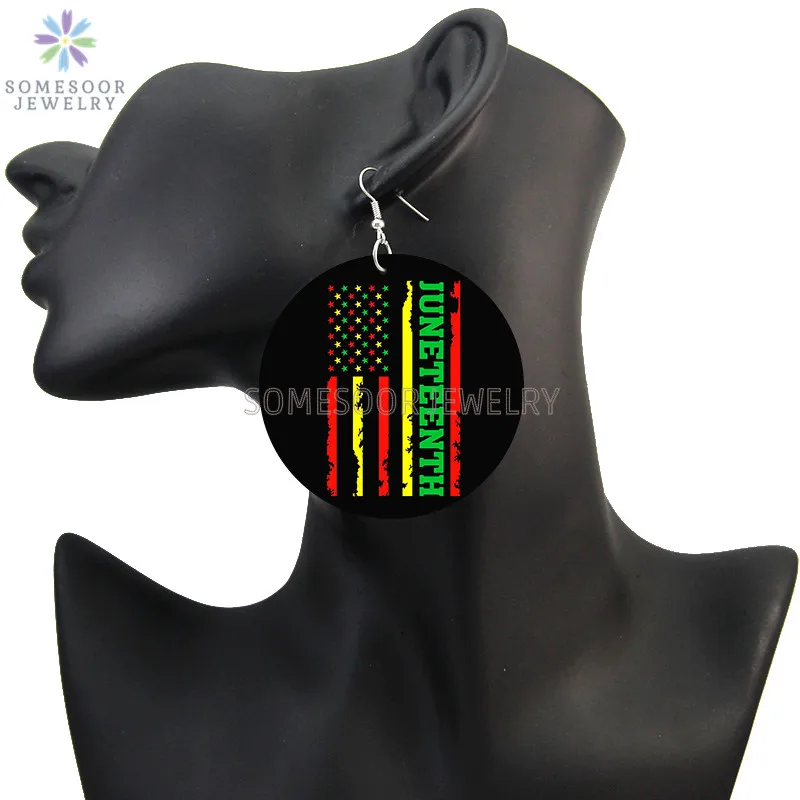 SOMESOOR Июнь 1865 года, черные деревянные серьги-капельки с рисунком в стиле Дня независимости