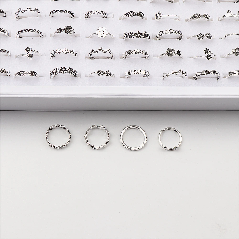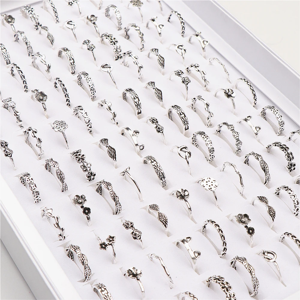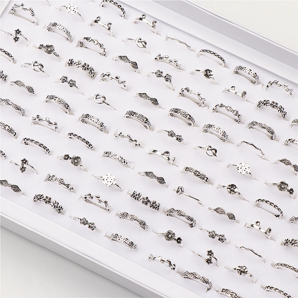 Модные Винтажные серебряные металлические кольца для женщин, 30 шт.лот