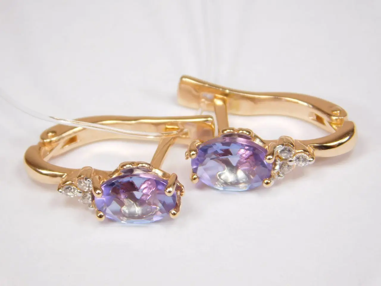 Серьги тренд 2022 NOVOZOLOTO подлинное серебро 925 пробы Россия, алексит лавендер, покрытие золото, бирка, пломба