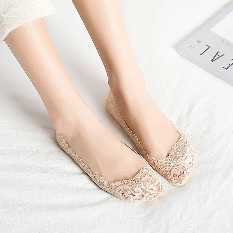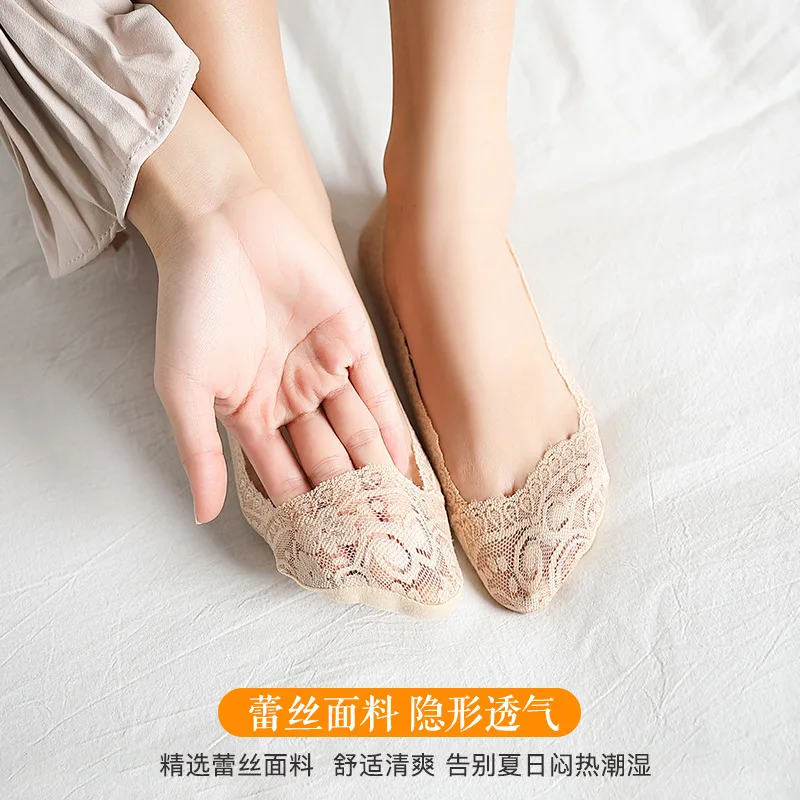 Туфли-носки женские короткие на высоком каблуке, кружевные Нескользящие, хлопковые невидимые однотонные шлепанцы до щиколотки, лето тонкие лодочкой