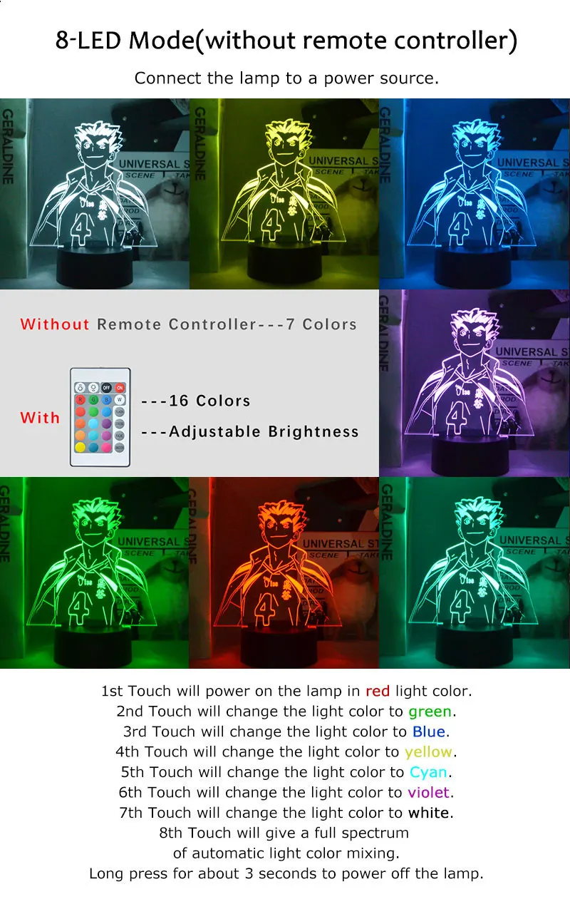Аниме хайкиу! Рисунок бокуто светодиодный верхнее освещение акриловые домашнего праздника внутренней отделки манга вентиляторы вечерние Прохладный настольная лампа vitage Dragon