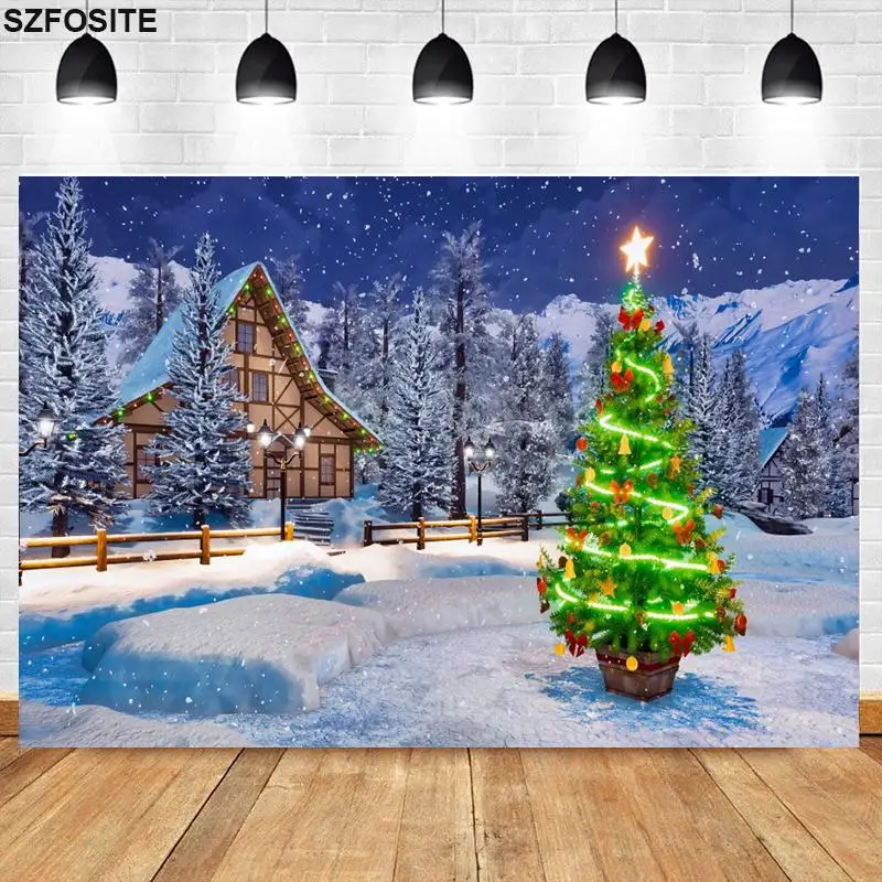 Зимние снежные ночные огни Рождественский тематический фон для фотостудии Праздничная вечеринка Декоративный детский Виниловый фон