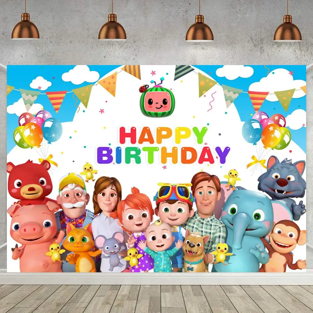 Cocomelon декор для детской вечеринки на день рождения баннер плакат мультяшный тематический торт разбивать семейный обеденный стол фото фоны