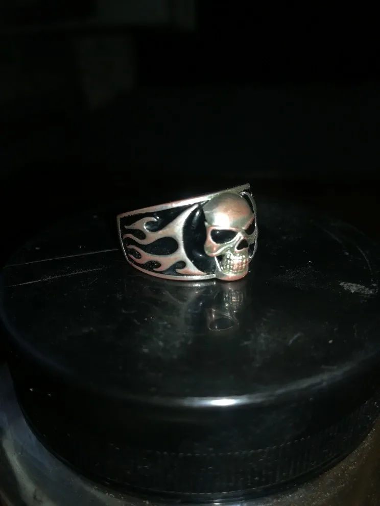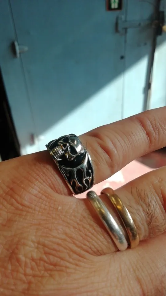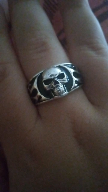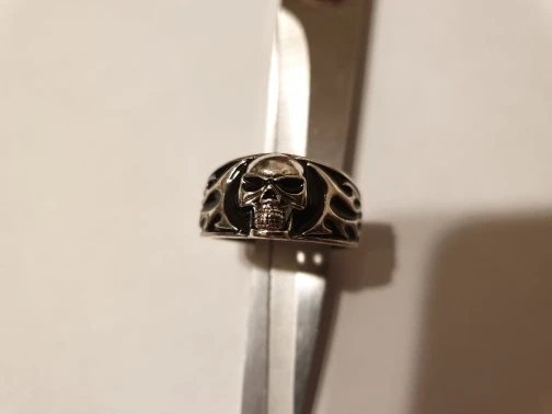 Дешева але гарна річ. Сам череп дивиться прямо, а не як на картинках ( шкода ). думаю, що швидко облізе бо не яка то не сталь.