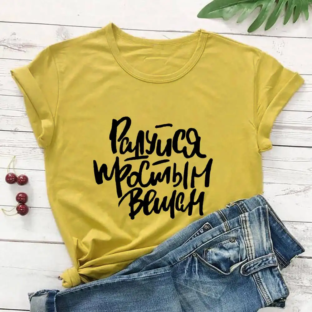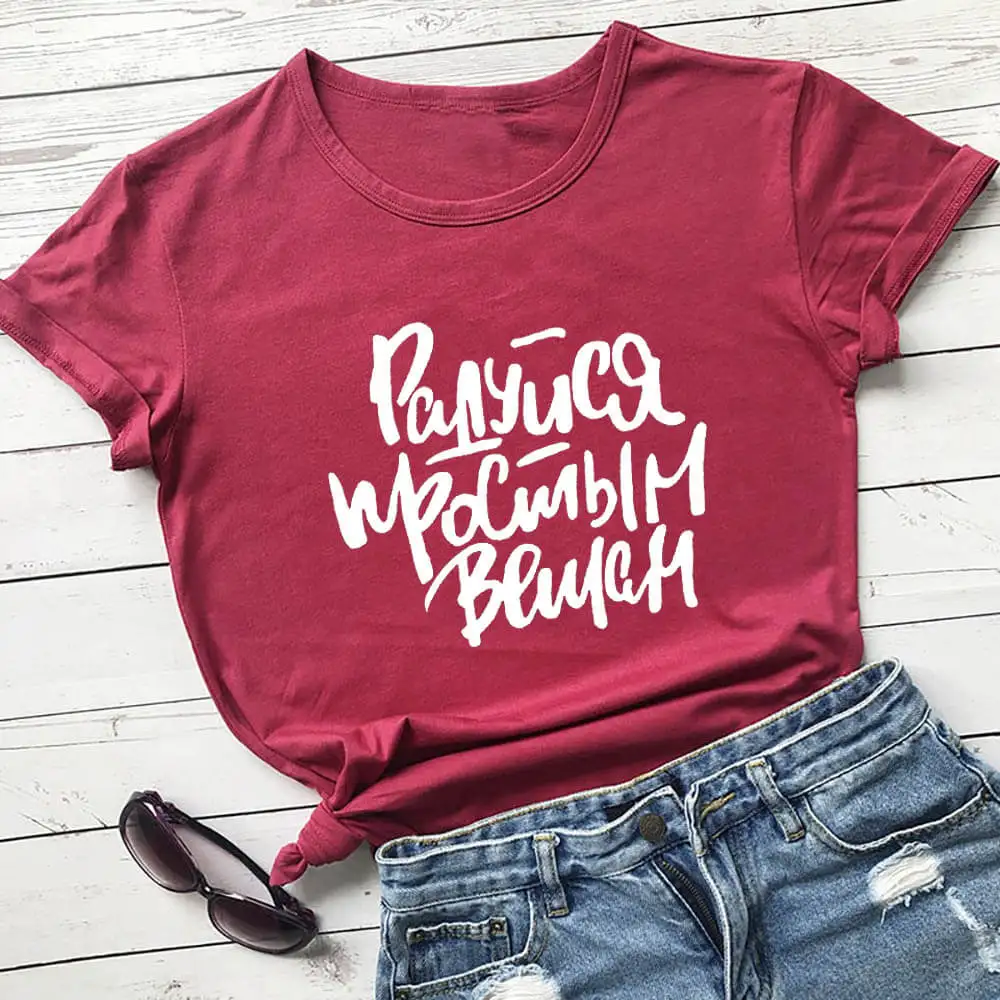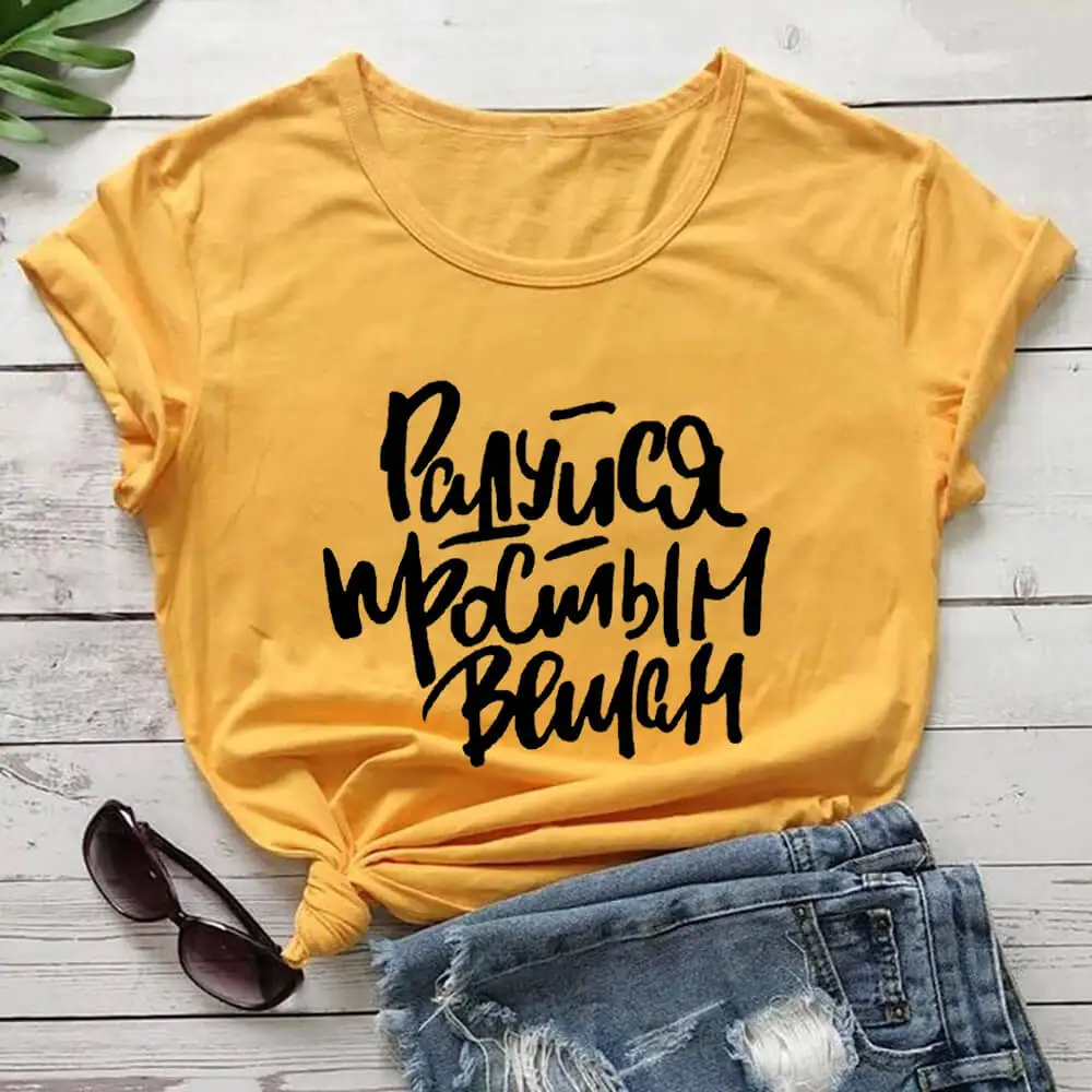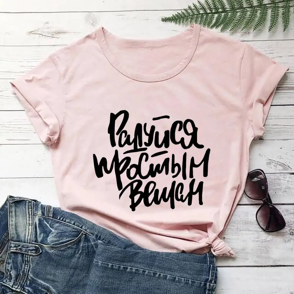 Радуйся простым вещам Женская футболка из 100% хлопка с русской кириллицей забавная летняя повседневная футболка унисекс с круглым вырезом футболка с короткими рукавами и надписью