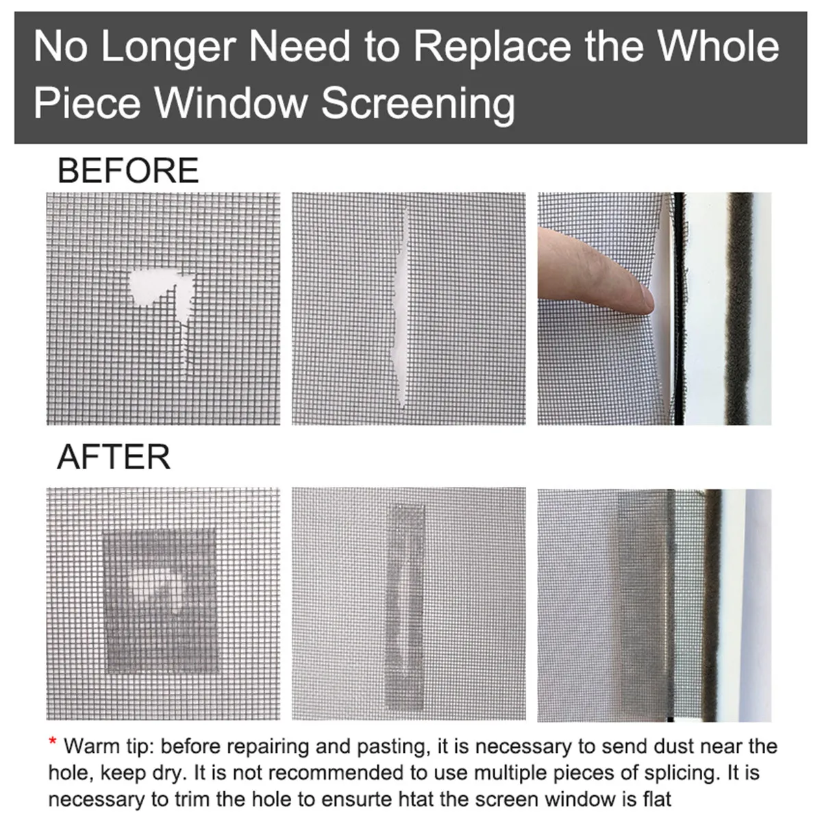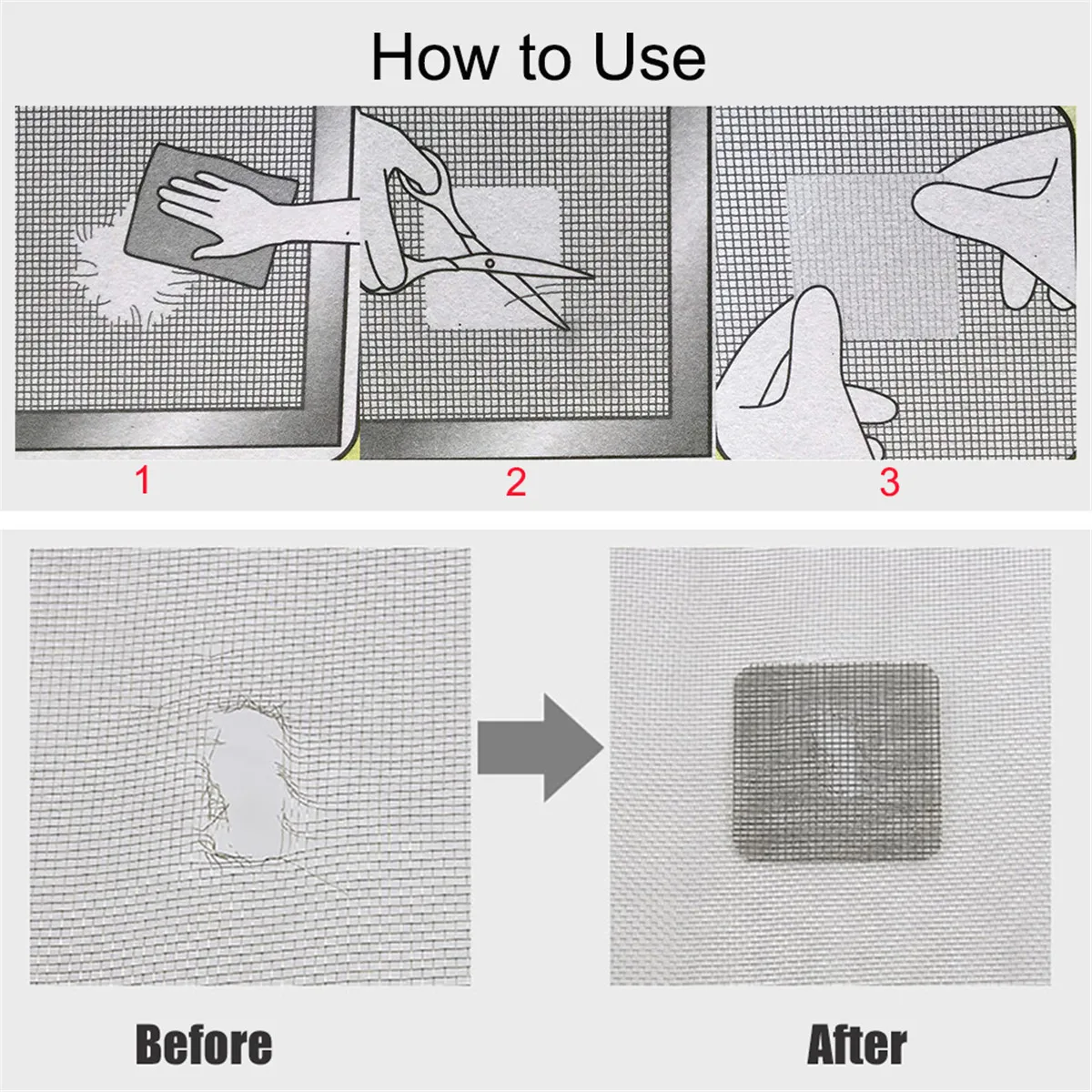 Очень прочный и долговечный:Клейкий слой набора для ремонта экрана является экологически чистым и высококачественным, он будет оставаться на поверхности экрана вашей двери или окна в течение длительного времени, потому что он специально разработан для защиты экрана от заплатки. Сверхпрочный клей и липкость, пригодные для использования на любой поверхности экрана.