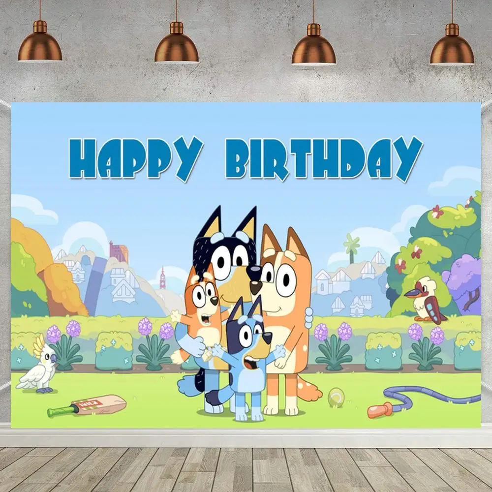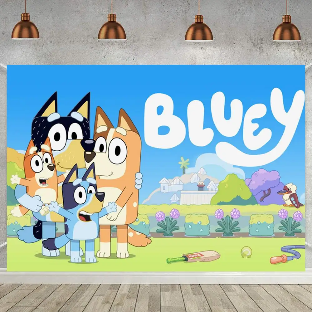 Детский фон Bluey для фотосъемки с изображением мультяшных собак семейвечерние НКИ детского дня рождения торта десерта стола декор сада ЗЕЛЕНАЯ ЛУЖАЙКА