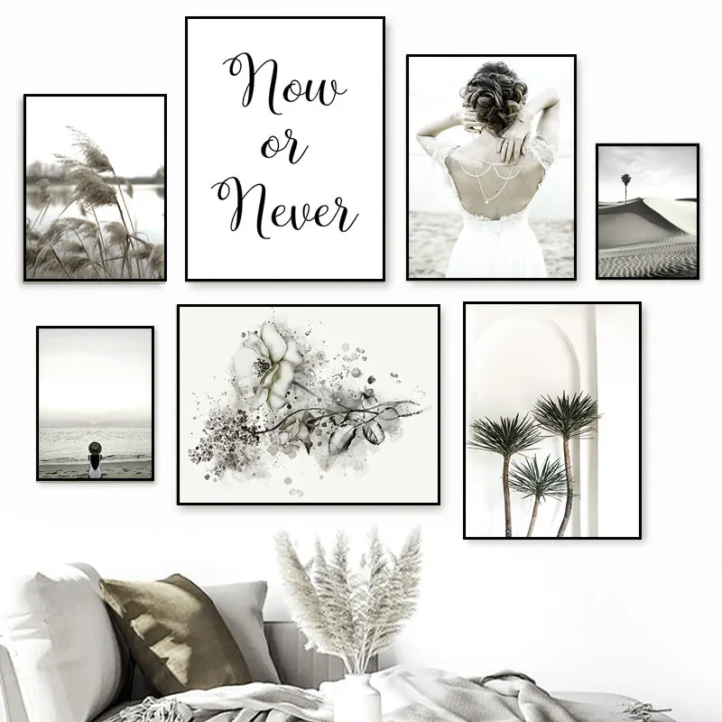 Картина на стену с изображением красивой женщины, Декор, тропический пляж, пески, дюны, Постер и принты, FJ007, картина с цитатой