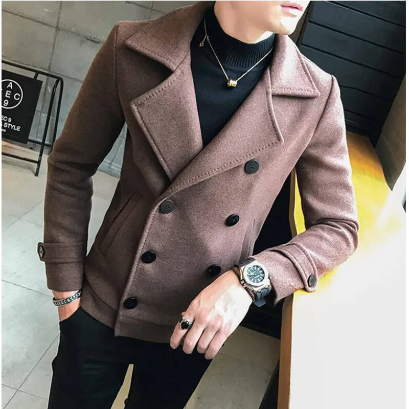 Мужское Короткое шерстяное пальто, повседневное двубортное пальто, ...