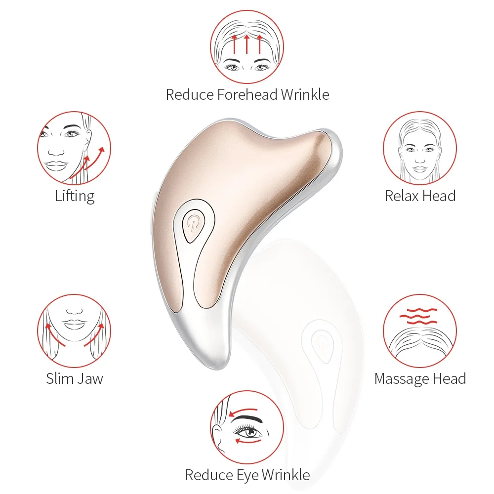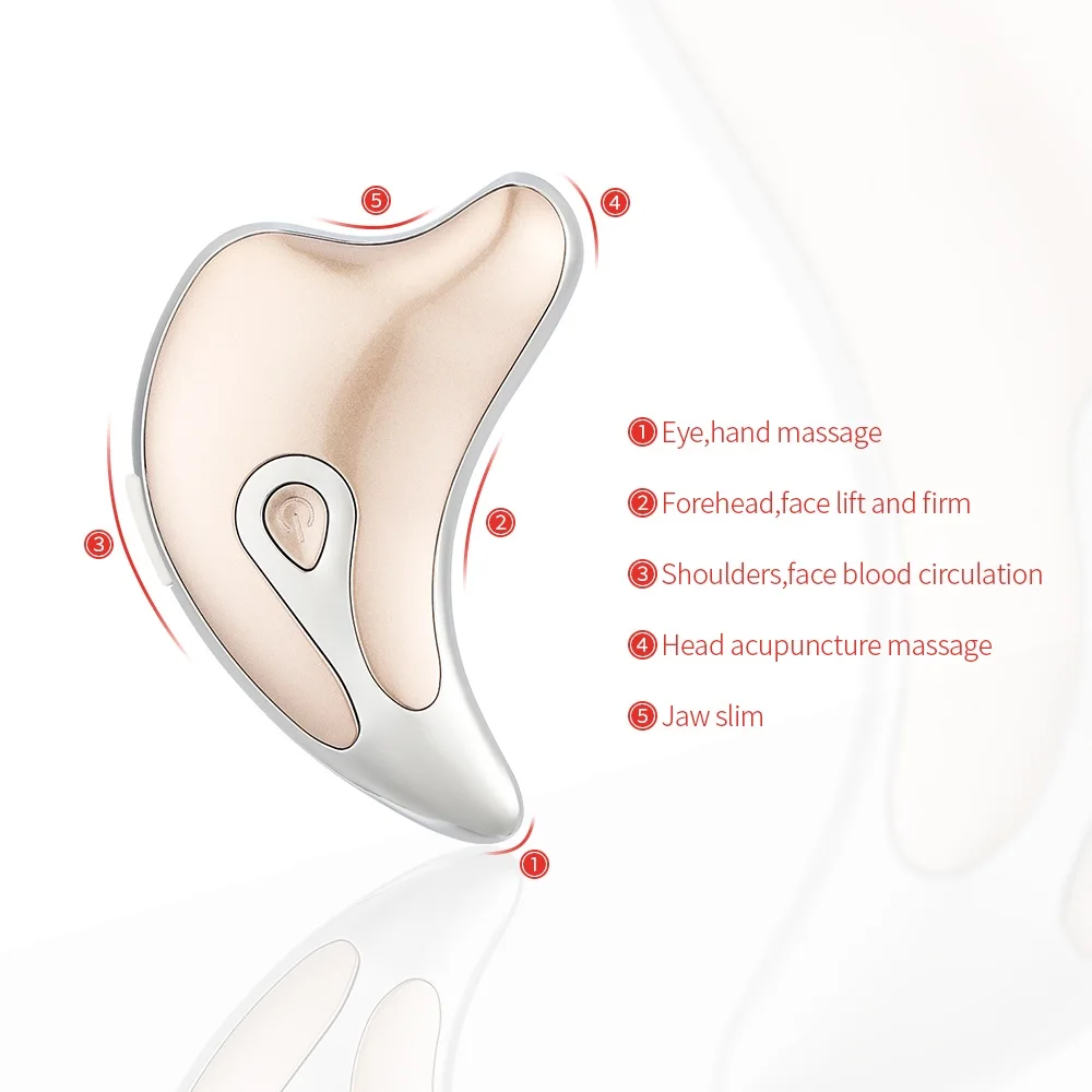 Особенности1. Внешний вид округлый и удобный с закругленными углами для более удобного использования.2. Дизайн дуги можно использовать для массажа глаз, рук и головы, снятия болезненности и снятия морщин на лице.3. Набор массажа, соскабливания, введения, подъема и других функций в одном, может удовлетворить различные потребности.4,2 режим: синий Светильник обеспечивает вибрационный массаж при нормальной температуре, красный Светильник обеспечивает вибрационный массаж при теплой температуре.5,45 ℃ теплый массаж может эффективно способствовать метаболизму лимфоидных гормонов, детоксикации кожи и осветлению цвета лица.6. Можно использовать в сочетании с вашей любимой сывороткой, тонером и кремом