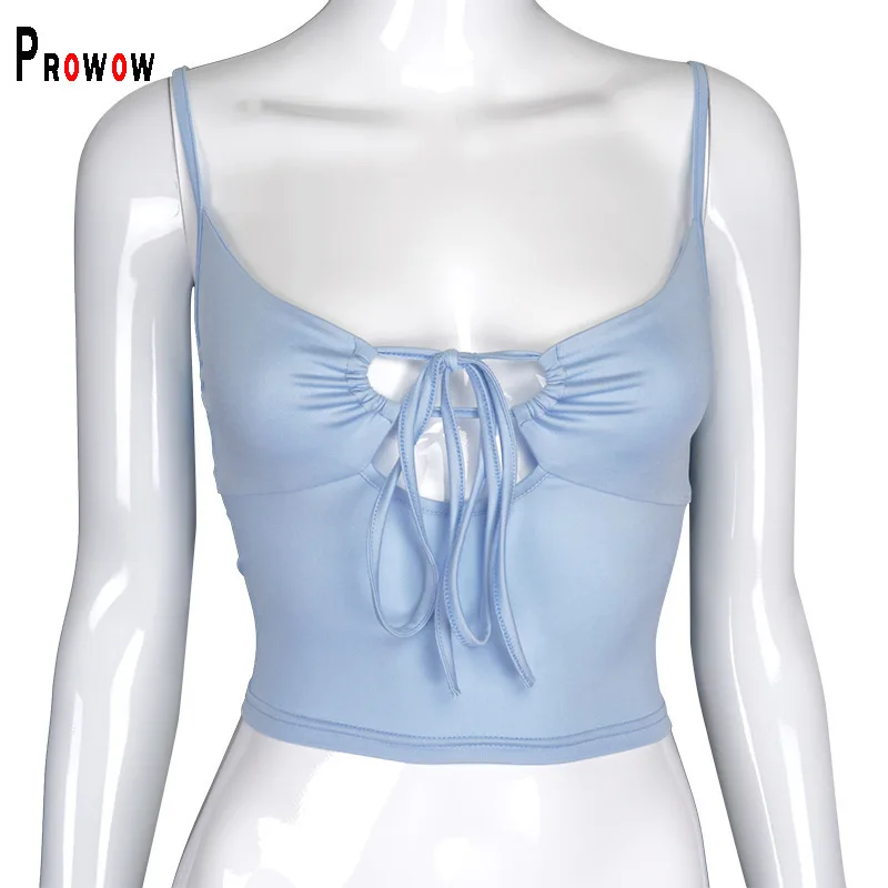 Prowow сексуальные женские топы на бретельках, 2021 Новое летнее платье с вырезом на спинке для верхняя одежда для женщин; Ровный Цвет короткие Стиль женской одежды