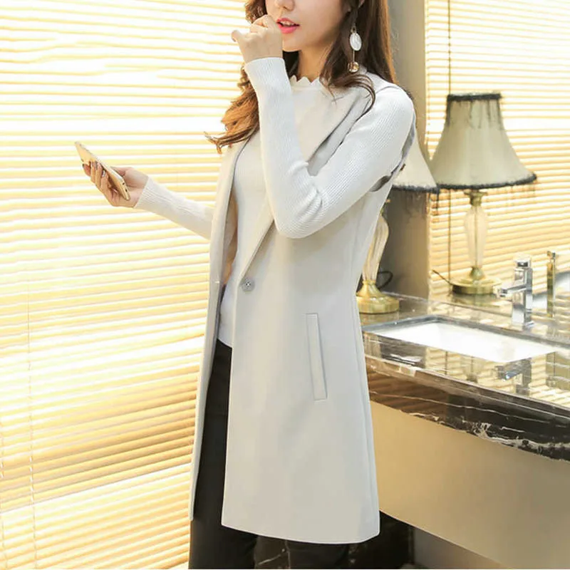 Женский Длинный блейзер, жилет, элегантный офисный жилет, повседневные Костюмы, дикий жилет без рукавов, куртка, женская новая одежда
